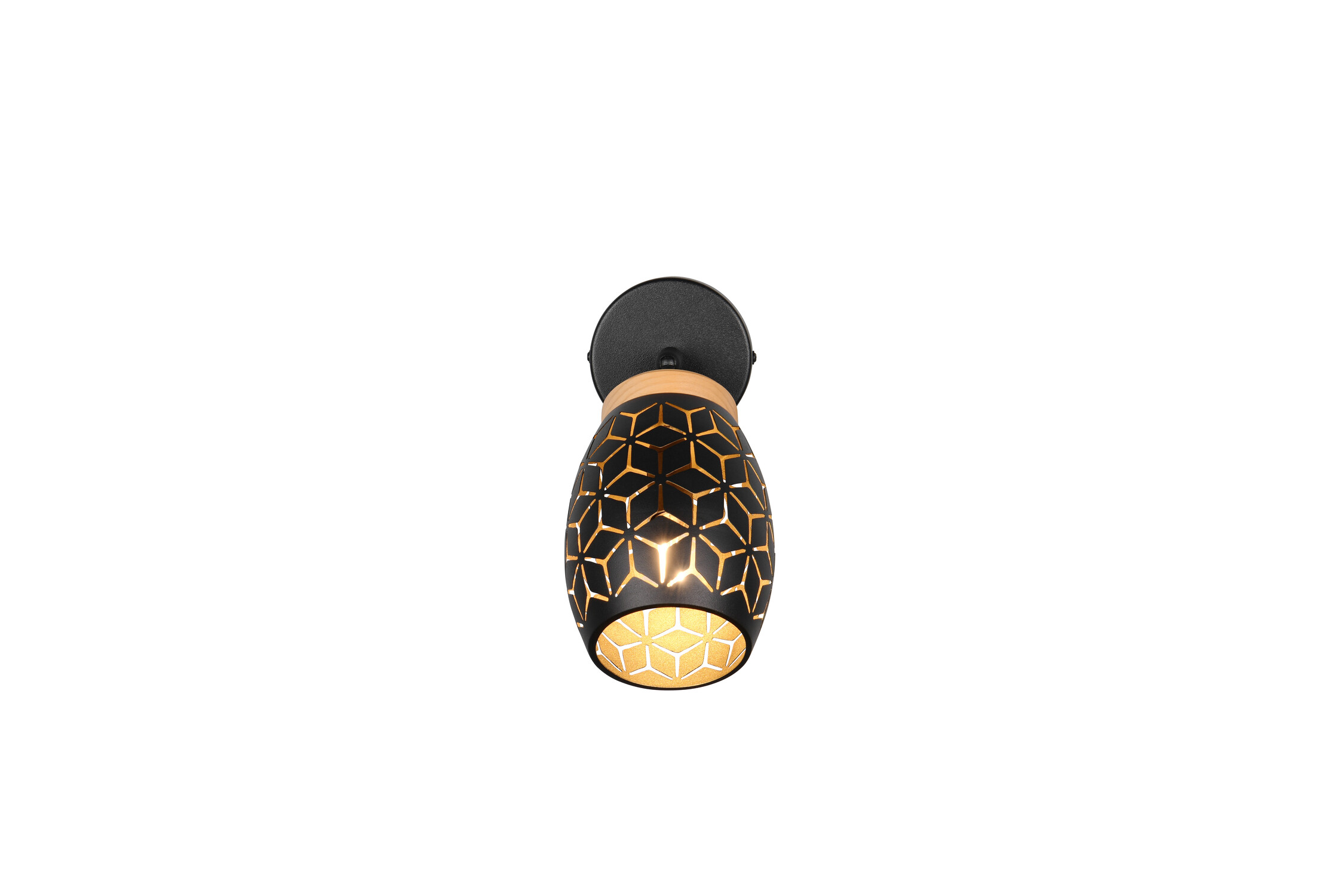 BIDAR Reality : luminaires motifs ajourés, métal et bois naturel, jeu de lumière décoratif, FLEXconnect ready. Blanc, brun, noir/or. | Type d'ampoule | Sphérique E14 (non inclus(e)) | | Puissance | max.10W | | Variation | Non Compatible | | Alimentation / Normes | 220V / Cl1 | | Dimensions | 120* 270 mm | | Matière(s) Principale(s) | Métal et bois | | Couleur/Finition | Noir-doré/bois | | Position / Fixation | A fixer au mur | | Utilisation | En intérieur | | Accessoire(s) | | | Garantie | 2 ans |