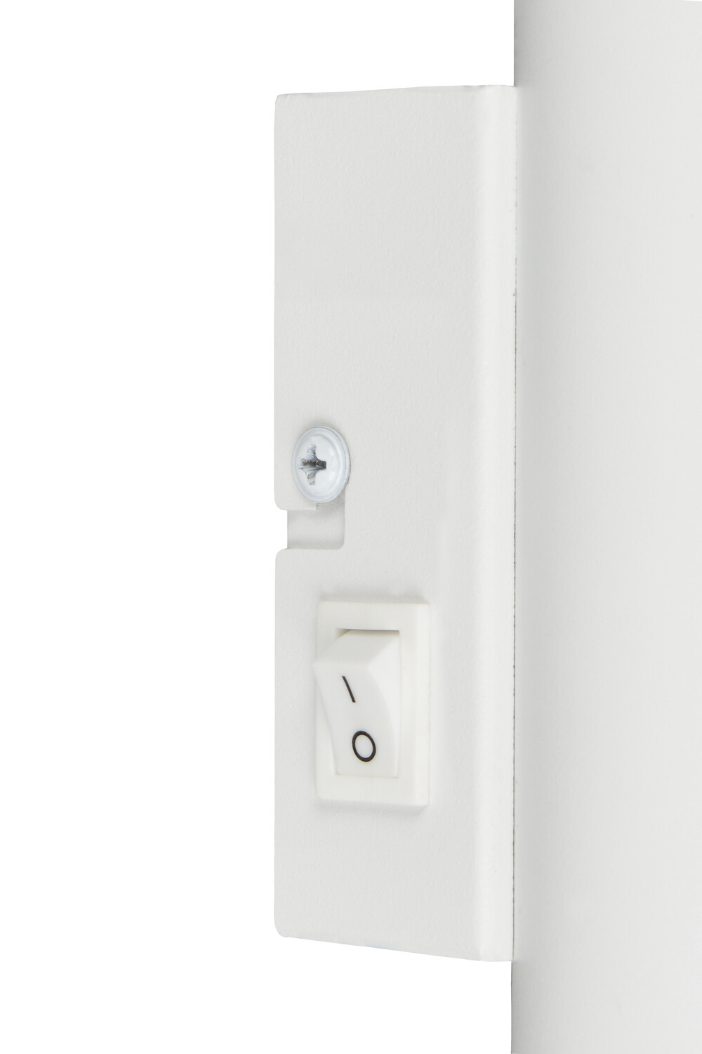 TARYN : Applique double lumieres haut et bas- Blanc MatCette applique murale TARYN est la version double (R26852731), offrant une portée plus longue que le modèle classique. Idéale pour les têtes de lit plus larges ou comme liseuse dans un salon. La finition blanc mat et son double éclairage, assure une esthétique sobre et soignée. L'interrupteur marche/arrêt est intégré pour un contrôle local.. Comme tous les modèles TARYN compatibles, il est FLEXconnect ready. Il utilise une ampoule GU10 (max 5W). Ce luminaire est un choix parfait pour un éclairage de lecture sans fil apparent. | Type d'ampoule | Spot Gu10 (non inclus(e)) | | Puissance | max 2*5W | | Variation | Non Compatible | | Alimentation / Normes | 220V/Cl1 | | Dimensions | 40* 70* 180 mm | | Matière(s) Principale(s) | Métal | | Couleur/Finition | Blanc mat | | Position / Fixation | A fixer au mur | | Utilisation | En intérieur | | Accessoire(s) | | | Garantie | 2 ans |