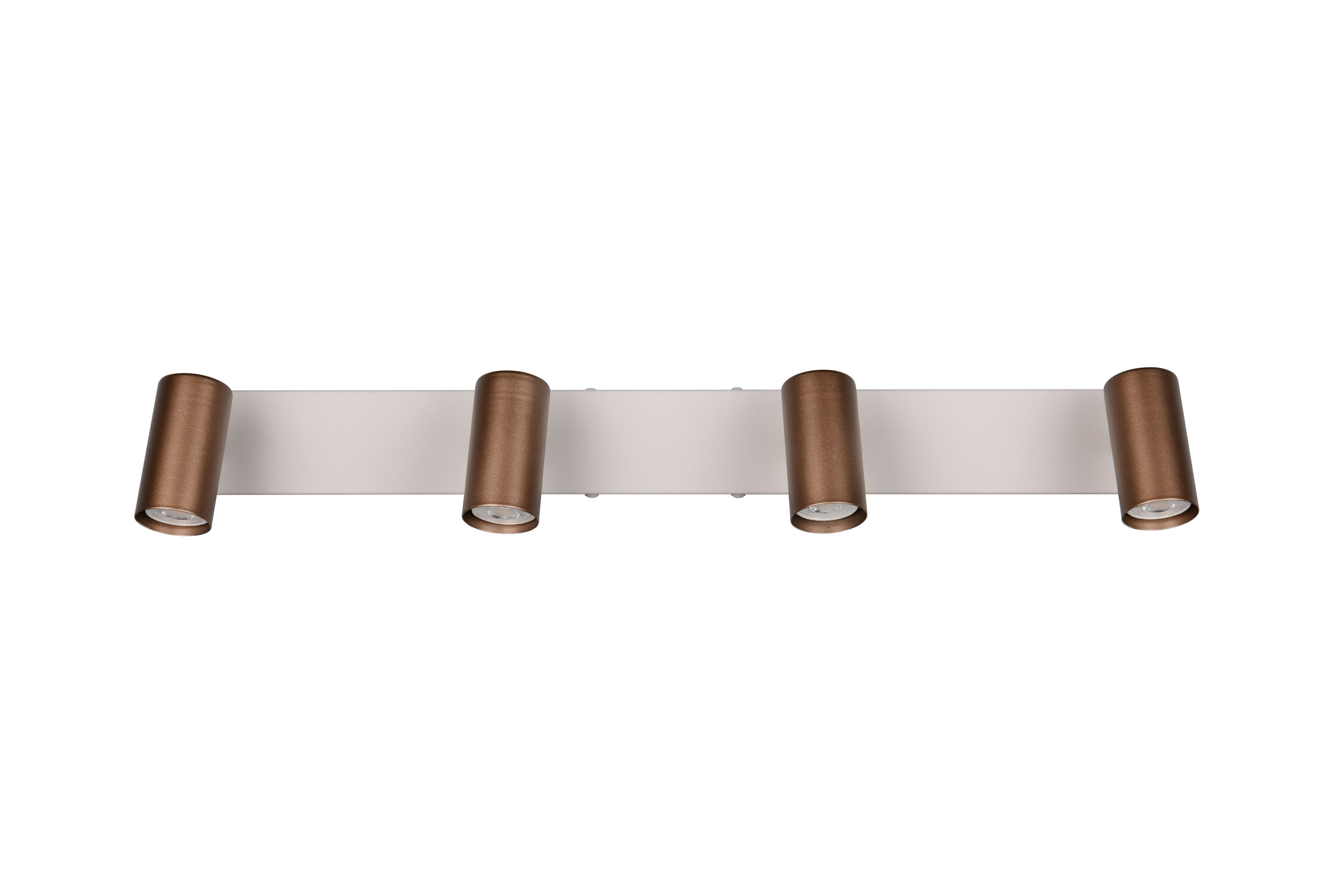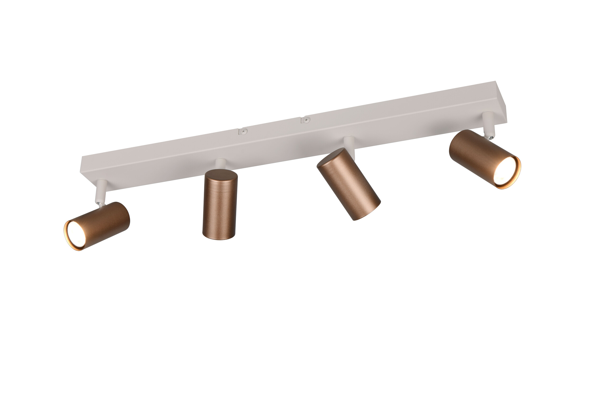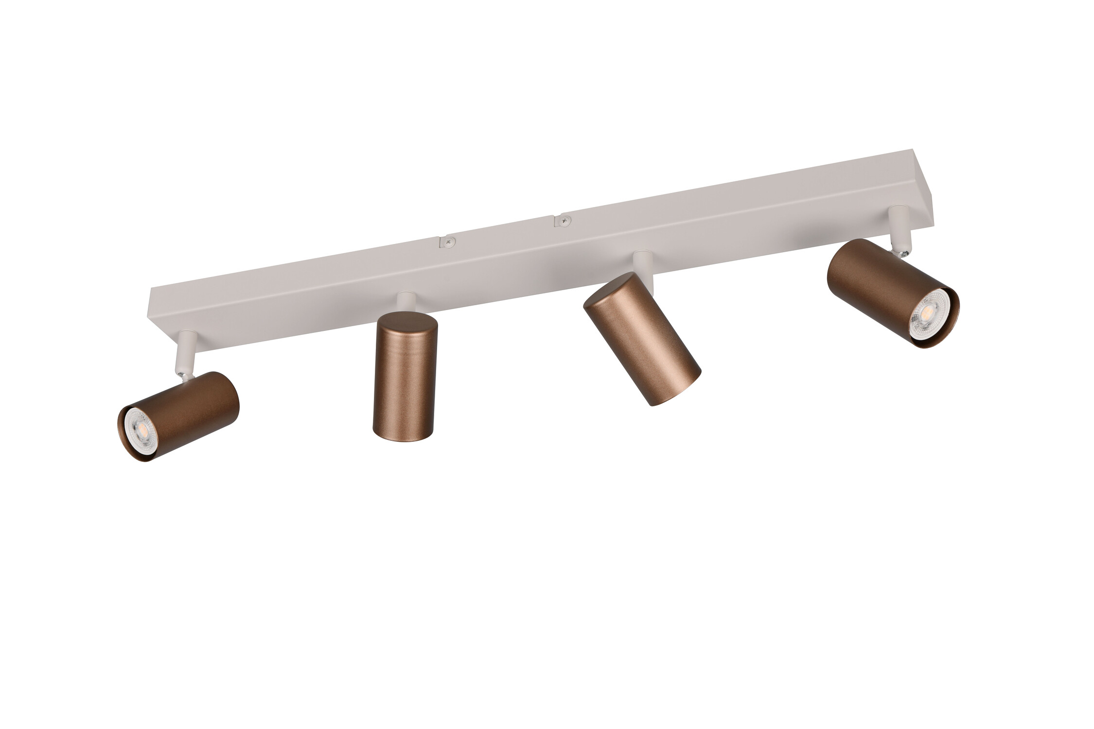 TARYN : Plafonnier Barre 4 Spots Orientables - finition CaféLa barre de 4 spots TARYN (R86854065) en finition Café est l'option idéale pour un éclairage général et directionnel dans les pièces spacieuses. Le gris mat est une finition moderne et discrète. Les quatre têtes de spot sont orientables, offrant une grande polyvalence pour diriger la lumière.. Ce modèle s'installe au mur ou au plafond. Il utilise des ampoules GU10 (max 5W par spot). Ce luminaire allie style minimaliste et puissance d'éclairage. TARYN : La collection TARYN offre un design minimaliste et une fonctionnalité maximale. Elle se décline en Blanc mat, Noir mat et Gris mat/Café. | Type d'ampoule | Spot Gu10 (non inclus(e)) | | Puissance | max 4*5W | | Variation | Compatible | | Alimentation / Normes | 220V/Cl1 | | Dimensions | 60* 135* 620 mm | | Matière(s) Principale(s) | Métal | | Couleur/Finition | Café | | Position / Fixation | A fixer au mur ou plafond | | Utilisation | En intérieur | | Accessoire(s) | | | Garantie | 2 ans |