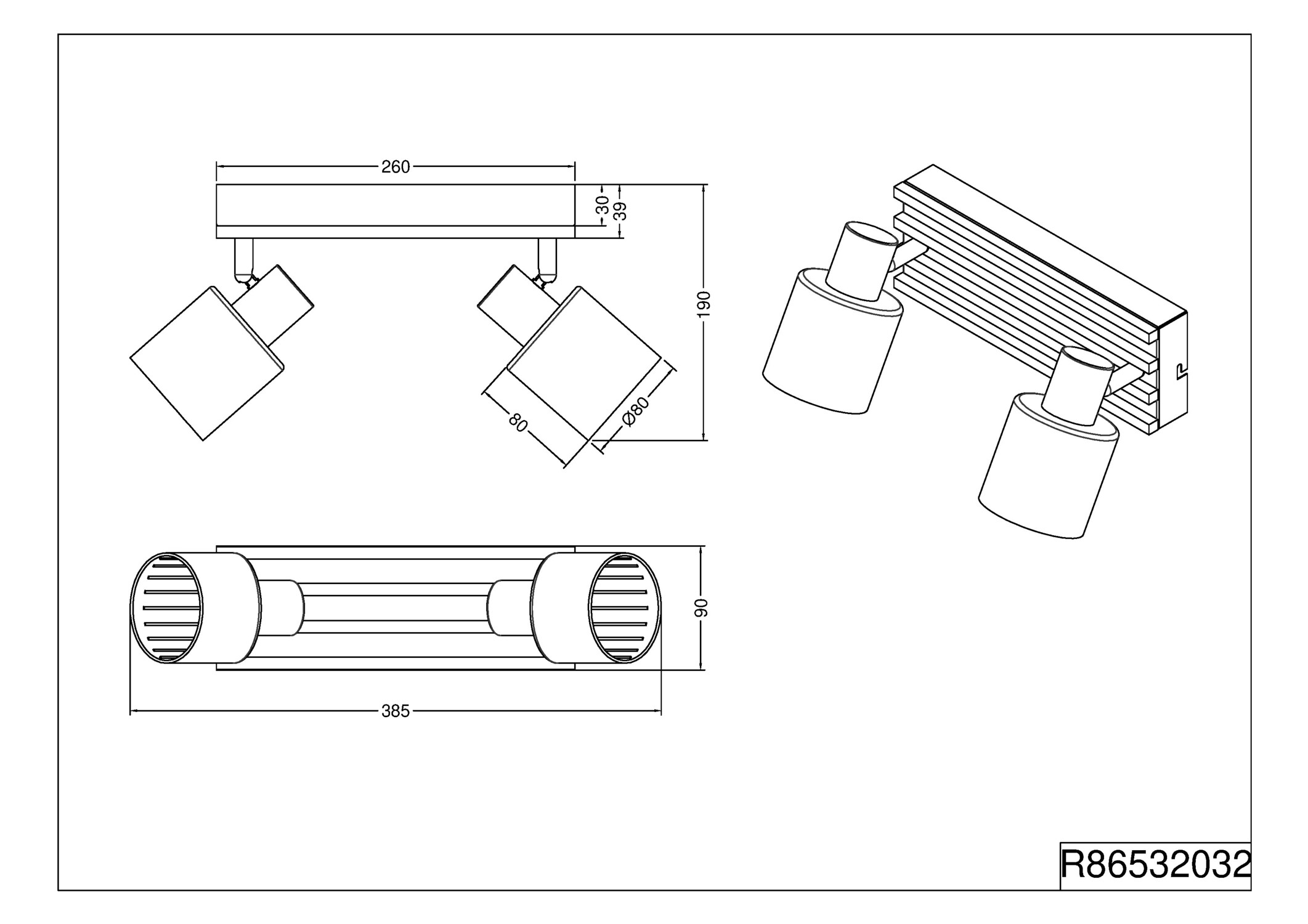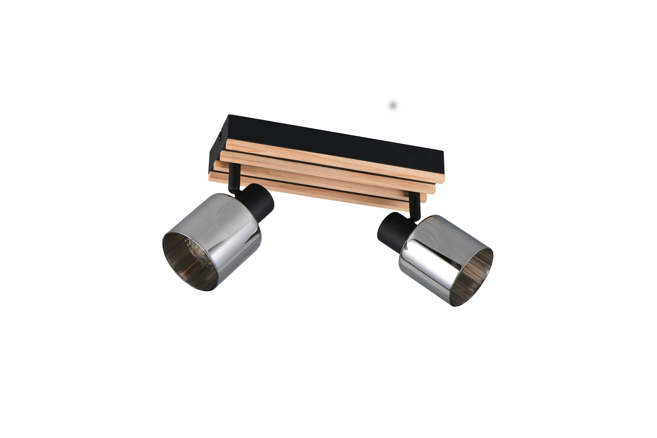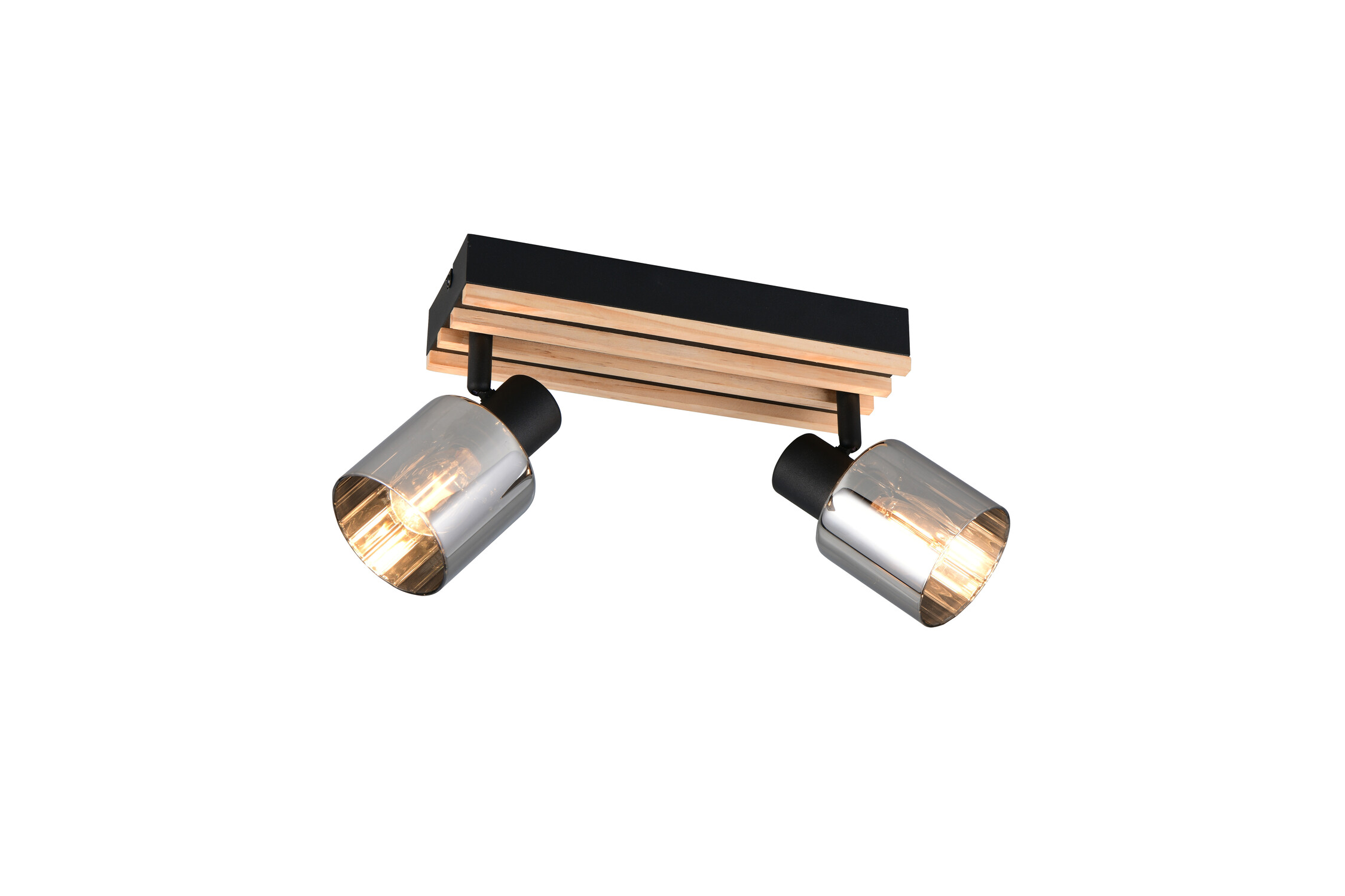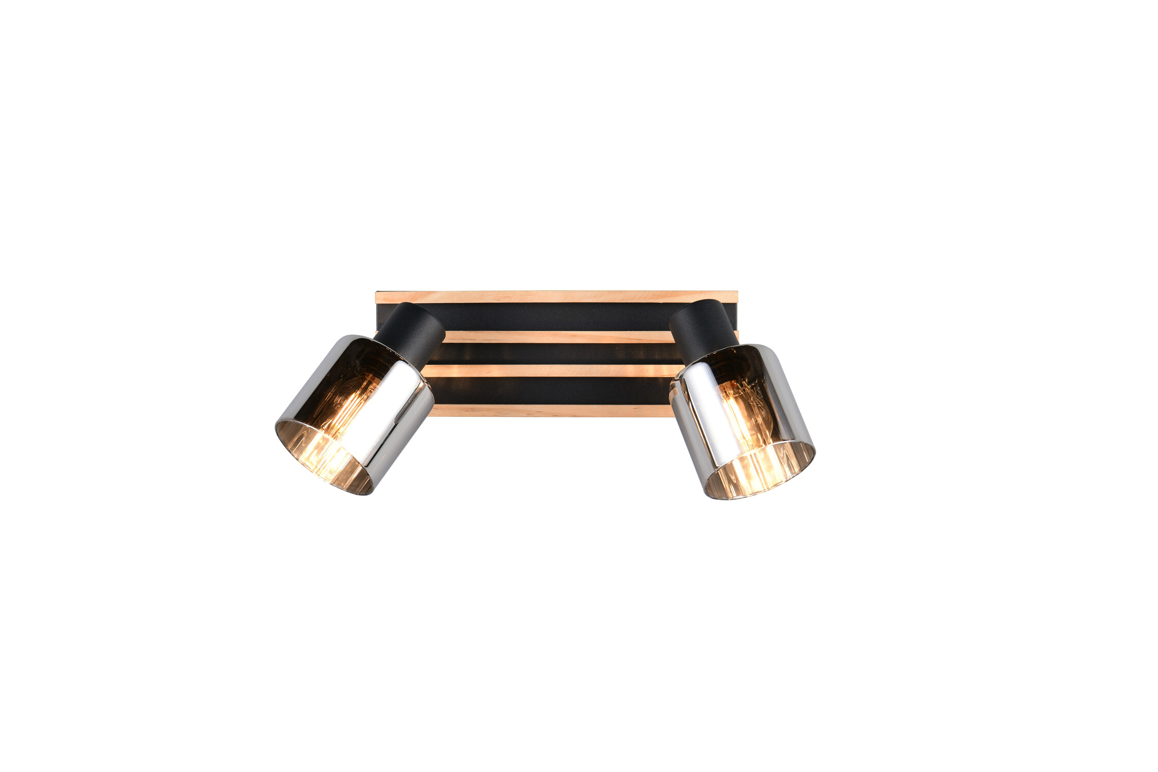 TRAVIA : Barre de 2 Spots Bois et Noir - Tendance DécoCette barre de spots TRAVIA 2 Lumières est le choix parfait pour ceux qui recherchent un éclairage à la fois stylé et fonctionnel. La fixation rectangulaire est enrichie par les baguettes de bois qui encadrent subtilement la base noire. Ce jeu de matériaux crée un contraste saisissant, très en vogue dans l'aménagement intérieur contemporain.. Les deux têtes de spot sont montées sur la barre et peuvent être orientées indépendamment, permettant d'éclairer deux zones différentes d'une pièce comme un salon ou une cuisine. Compatible avec les ampoules E14, ce luminaire R86532032 offre un éclairage puissant et modulable, s'intégrant parfaitement aux thèmes décoratifs industriels ou nordiques. TRAVIA : La collection TRAVIA se distingue par son design industriel-chic, mélangeant harmonieusement des structures noires mates et des inserts décoratifs en bois naturel. | Type d'ampoule | Sphérique E14 (non inclus(e)) | | Puissance | max 10W | | Variation | Compatible | | Alimentation / Normes | 220V/Cl1 | | Dimensions | 90* 190* 385 mm | | Matière(s) Principale(s) | Métal et bois | | Couleur/Finition | Noir et bois clair | | Position / Fixation | A fixer au mur ou plafond | | Utilisation | En intérieur | | Accessoire(s) | | | Garantie | 2 ans |