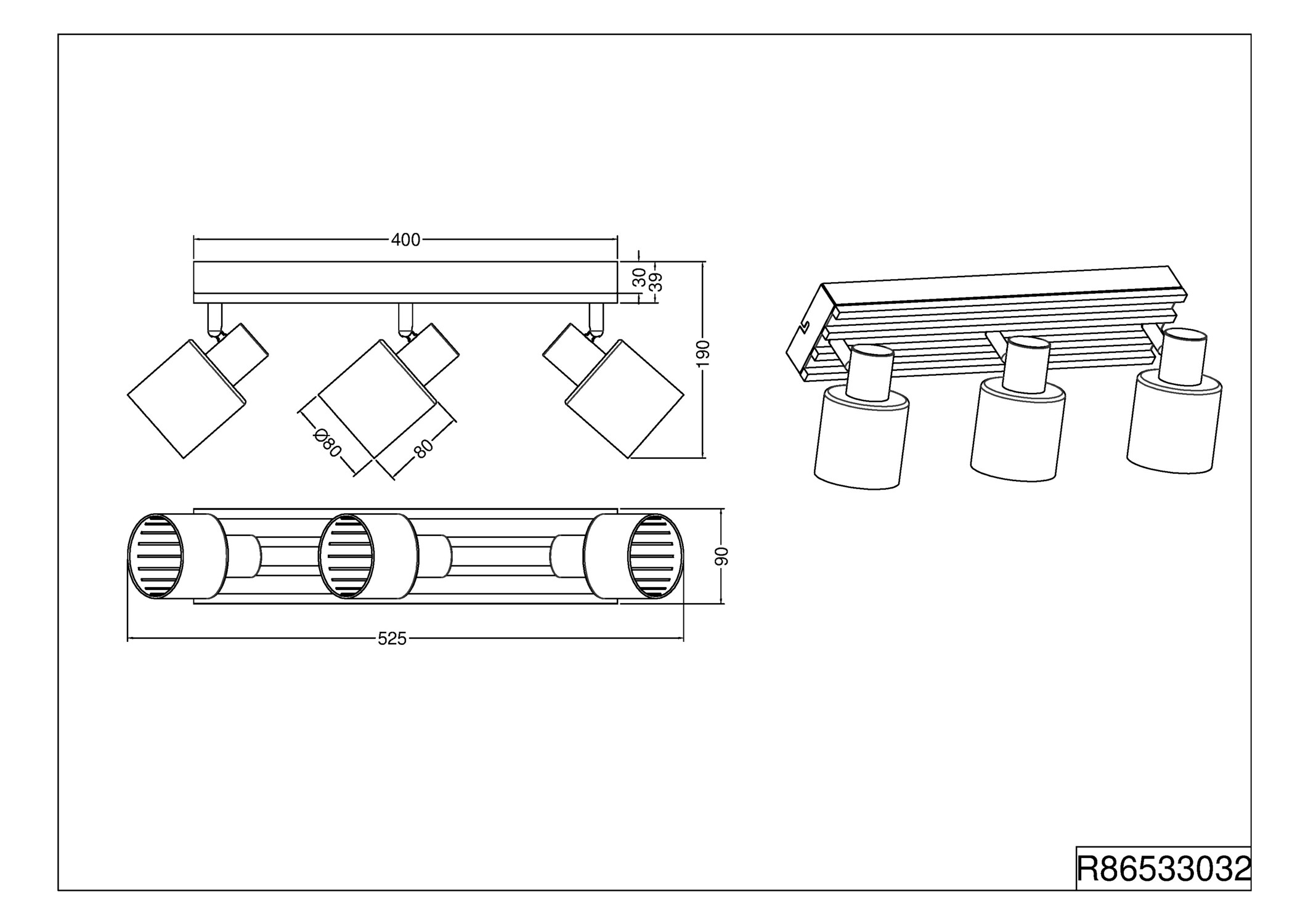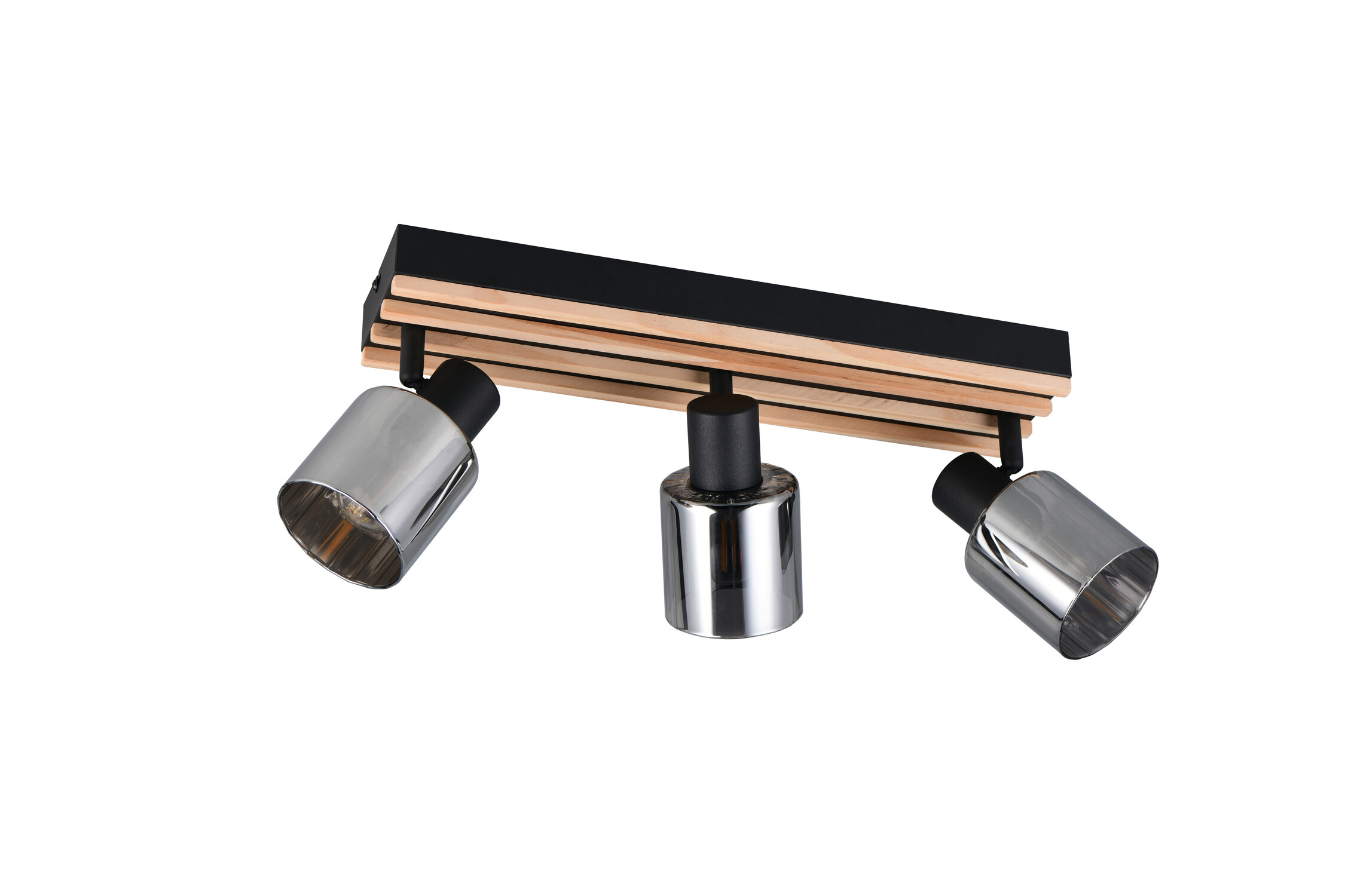 TRAVIA : Barre 3 Spots Bois/Noir Mat - L'Élégance DécoOptez pour la barre de spots TRAVIA 3 Lumières R86533032 pour un éclairage général efficace et au goût du jour. La structure allongée est rehaussée par des tiges de bois clair qui s'intègrent au support noir mat, soulignant l'aspect naturel et contemporain du luminaire. Ce modèle est parfait pour être installé au-dessus d'un plan de travail ou dans un salon.. Les trois têtes de spot peuvent être orientées individuellement, ce qui est essentiel pour un éclairage modulable. Cette flexibilité vous permet de diriger la lumière vers plusieurs zones clés de la pièce. Le contraste entre les matériaux (bois scandinave et métal industriel) en fait une solution d'éclairage polyvalente qui rehausse immédiatement le style de votre intérieur. Fonctionne avec des ampoules E14. TRAVIA : La collection TRAVIA se distingue par son design industriel-chic, mélangeant harmonieusement des structures noires mates et des inserts décoratifs en bois naturel. | Type d'ampoule | Sphérique E14 (non inclus(e)) | | Puissance | max 10W | | Variation | Compatible | | Alimentation / Normes | 220V/Cl1 | | Dimensions | 90* 190* 525 mm | | Matière(s) Principale(s) | Métal et bois | | Couleur/Finition | Noir et bois clair | | Position / Fixation | A fixer au mur ou plafond | | Utilisation | En intérieur | | Accessoire(s) | | | Garantie | 2 ans |