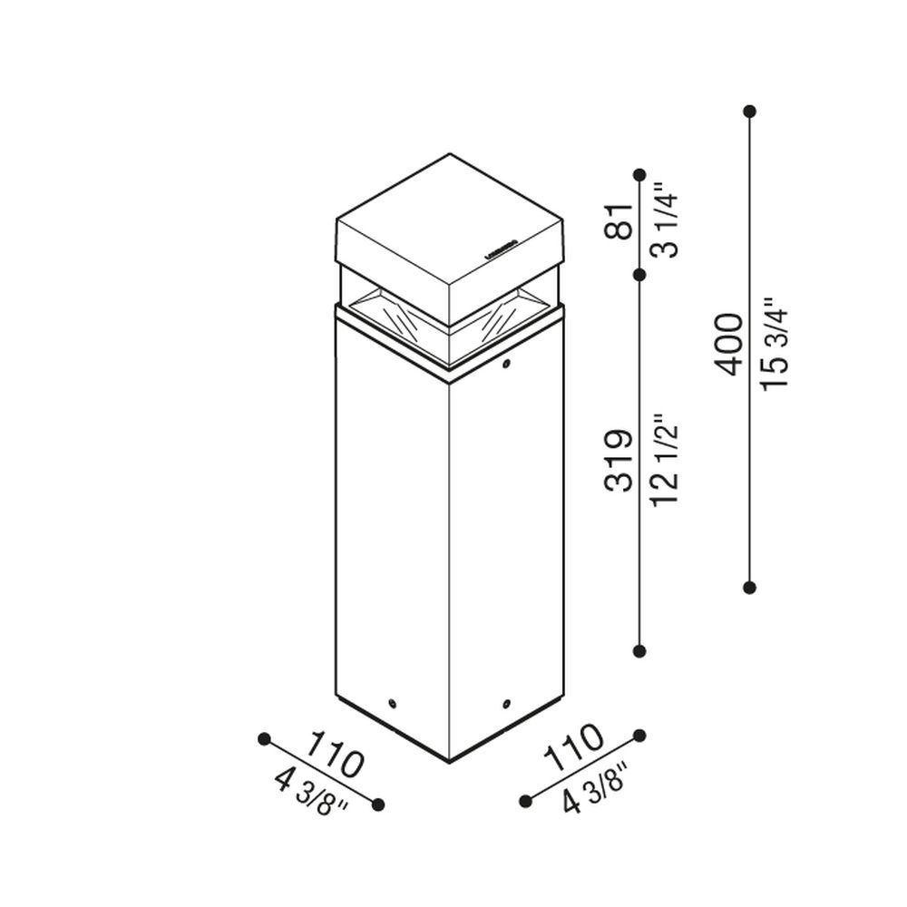 La lumière est diffusée sur les 4 directions (avant, arrière, gauche et droite). La borne se fixe au sol ou s'emboîte sur un tube de Ø60mm déjà existant.