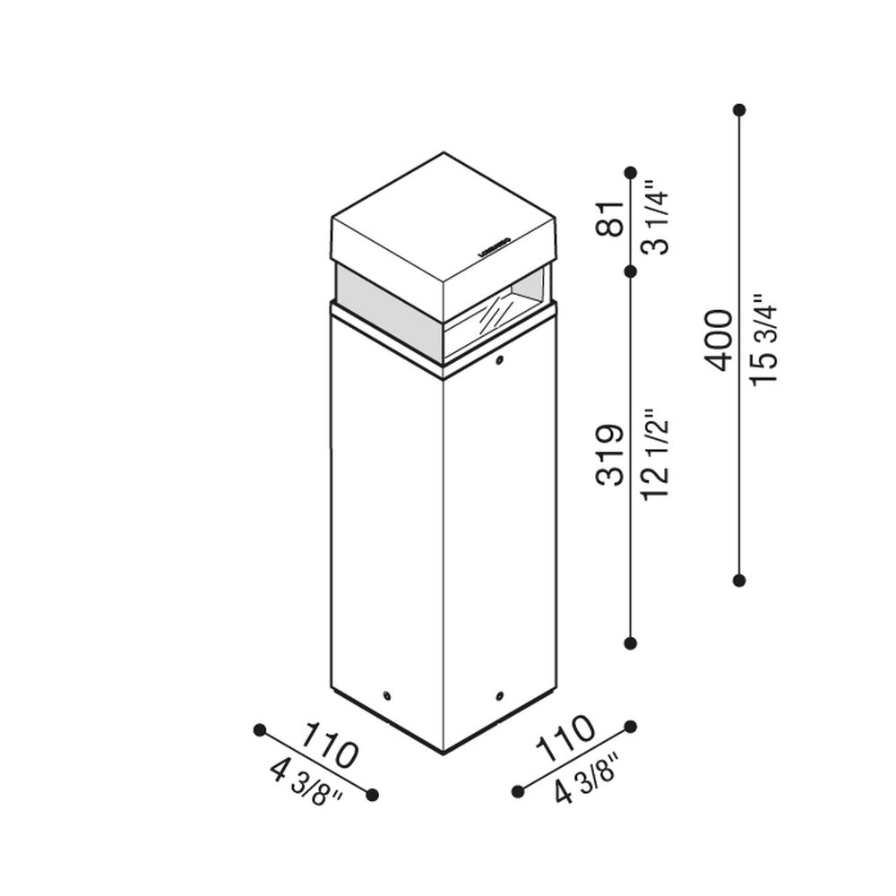 La lumière est diffusée sur 2 côtés (gauche et droite). La borne se fixe au sol ou s'emboîte sur un tube de Ø60mm déjà existant.