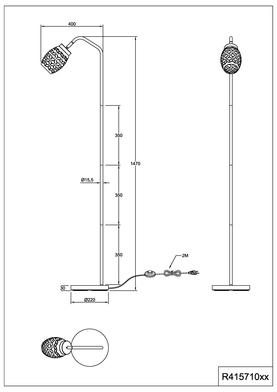 Culot E27 compatible LED max 10W (non fournie). Interrupteur on/off intégré. Fonction liseuse.