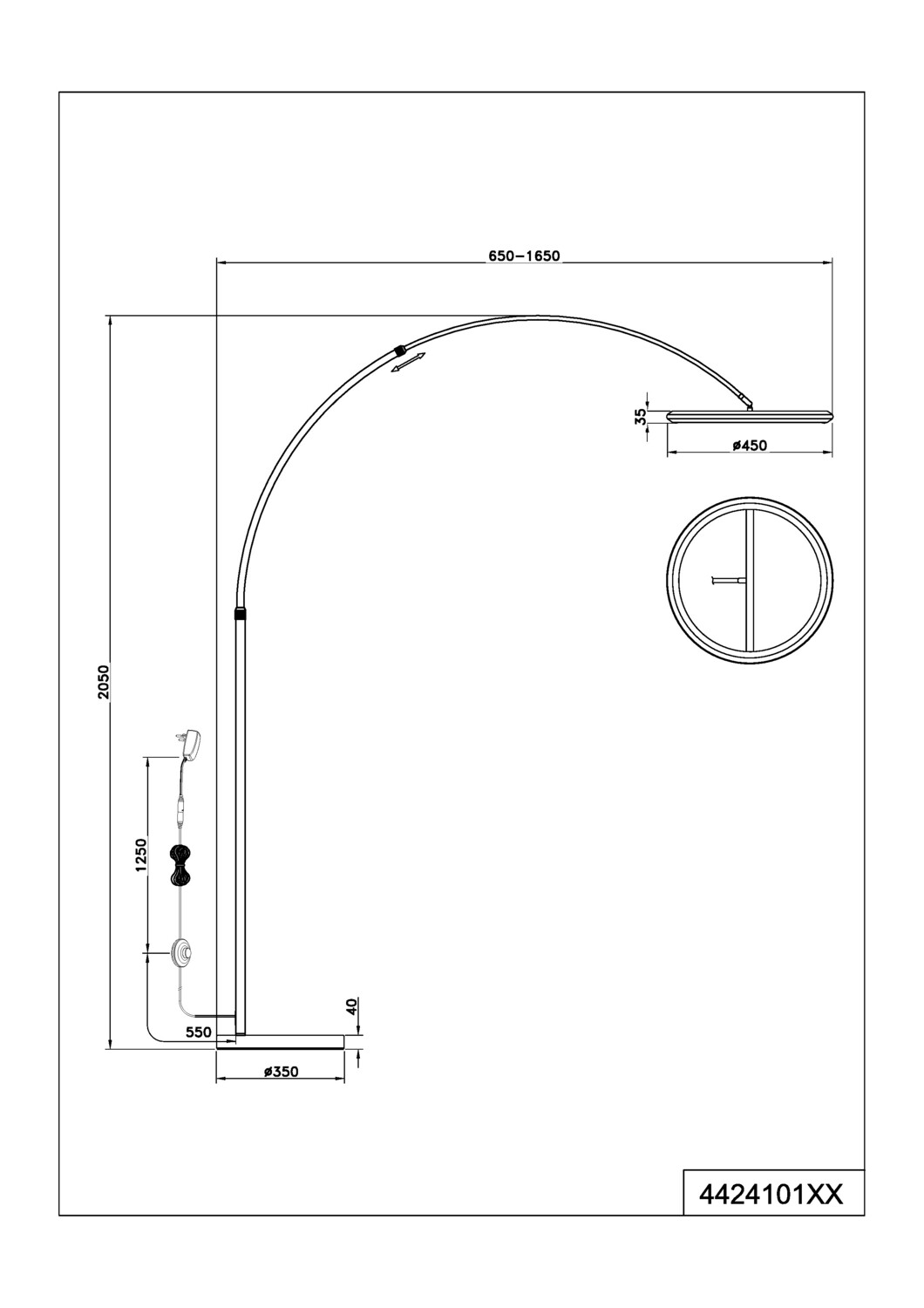 CCT 2300/3000/4000°K 2700=chaud • 3000=chaud neutre • 4000=neutre • 6000=froid | | Variation | Inclus | | Alimentation / Normes | 220V/Cl2 | | Dimensions | 450* 2050* 650/1650 mm | | Matière(s) Principale(s) | Métal | | Couleur/Finition | Noir mat | | Position / Fixation | A poser | | Utilisation | En intérieur | | Accessoire(s) | | | Garantie | 2+3 ans