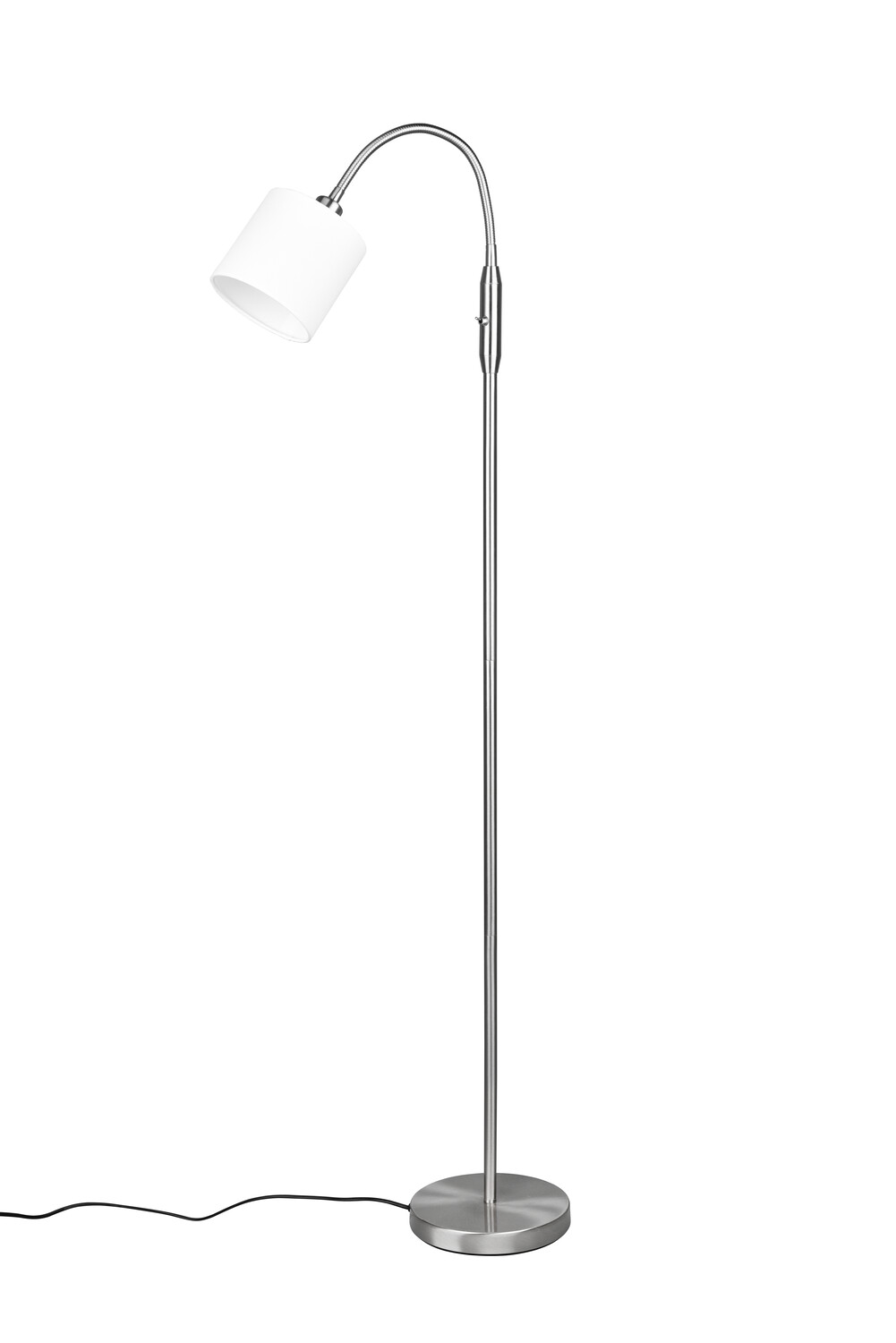 Le lampadaire liseuse TOMMY (R46331001) est le compagnon idéal de vos moments de lecture. Sa structure en métal Nickel mat supporte un abat-jour cylindrique en tissu Blanc monté sur col de cygne flexible.