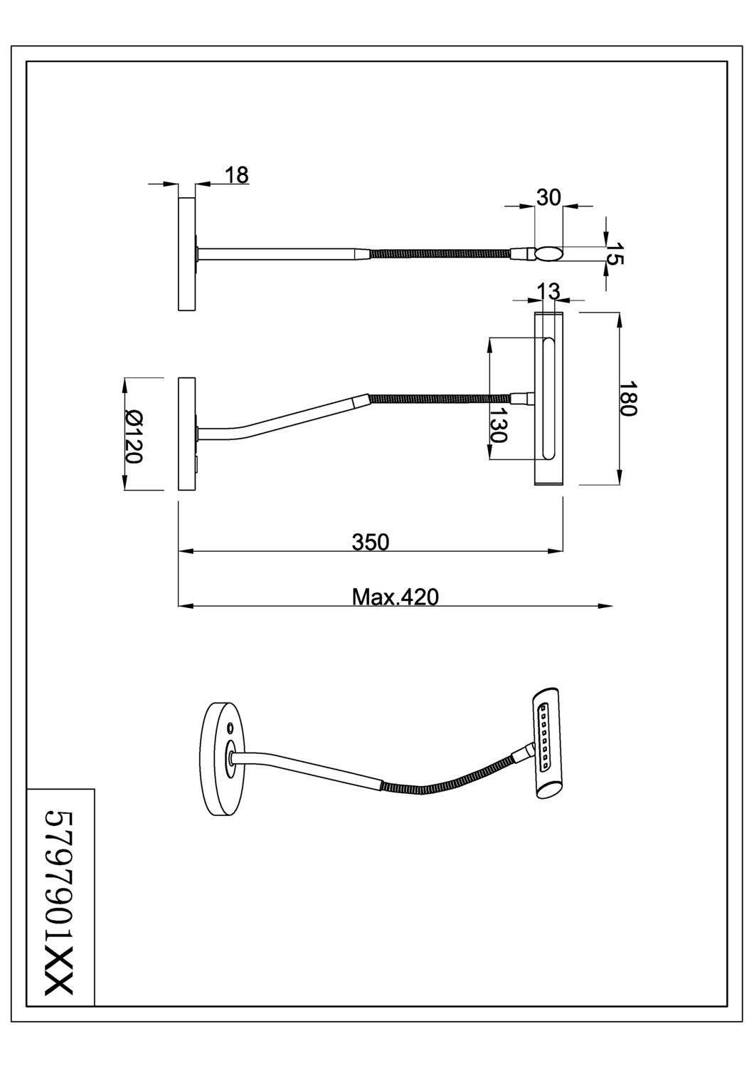 Questions Fréquentes▶ Quelle est la puissance ?LED intégrée de 4W pour 400 lumens en blanc chaud 3000K. ▶ Le bras est-il réglable ?OUI, le bras flexible permet d'orienter la lumière dans toutes les directions. ▶ Peut-on varier l'intensité ?OUI, un variateur rotatif intégré permet de régler la luminosité en continu. ▶ Est-elle adaptée au travail sur bureau ?OUI, ses 400 lumens offrent un éclairage suffisant pour lire ou travailler, et le bras flexible permet de diriger la lumière. ▶ Quelle garantie ?Garantie 5 ans sur la LED et 2 ans sur le luminaire. |