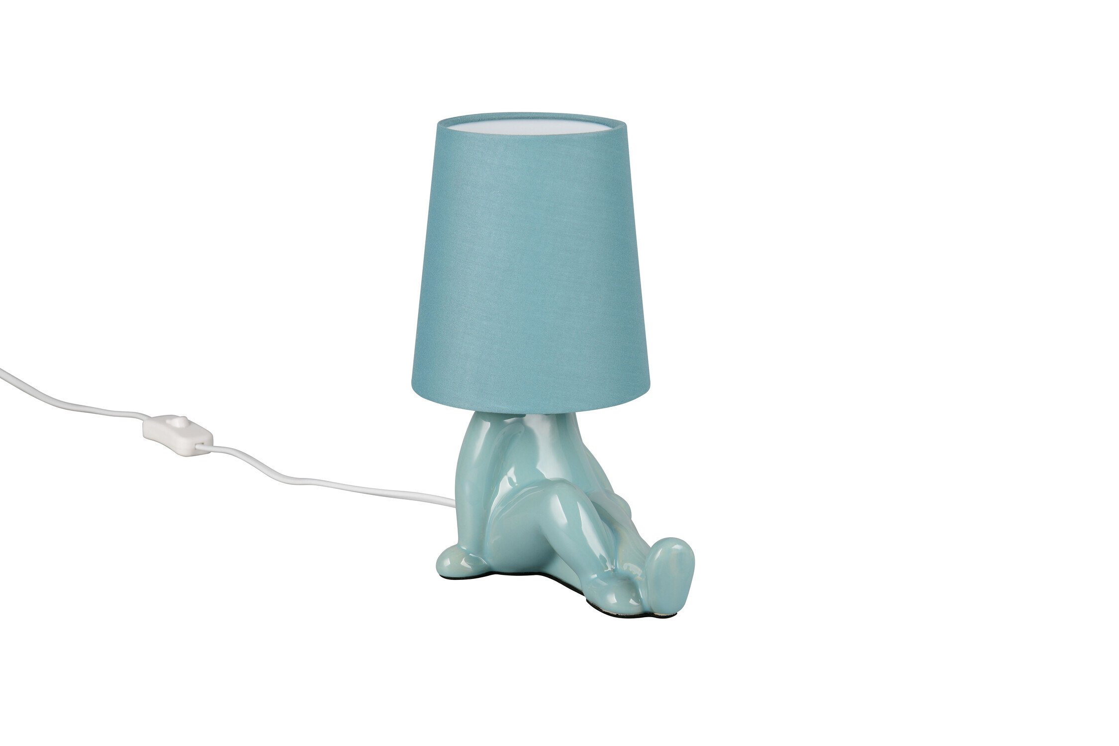 Lampe HUMA Bleu Céramique Personnage Assis E14 La lampe de table HUMA (R56531012) en céramique bleue apporte une touche ludique et colorée à votre intérieur. Son design représente un personnage assis portant un abat-jour en tissu bleu sur la tête.