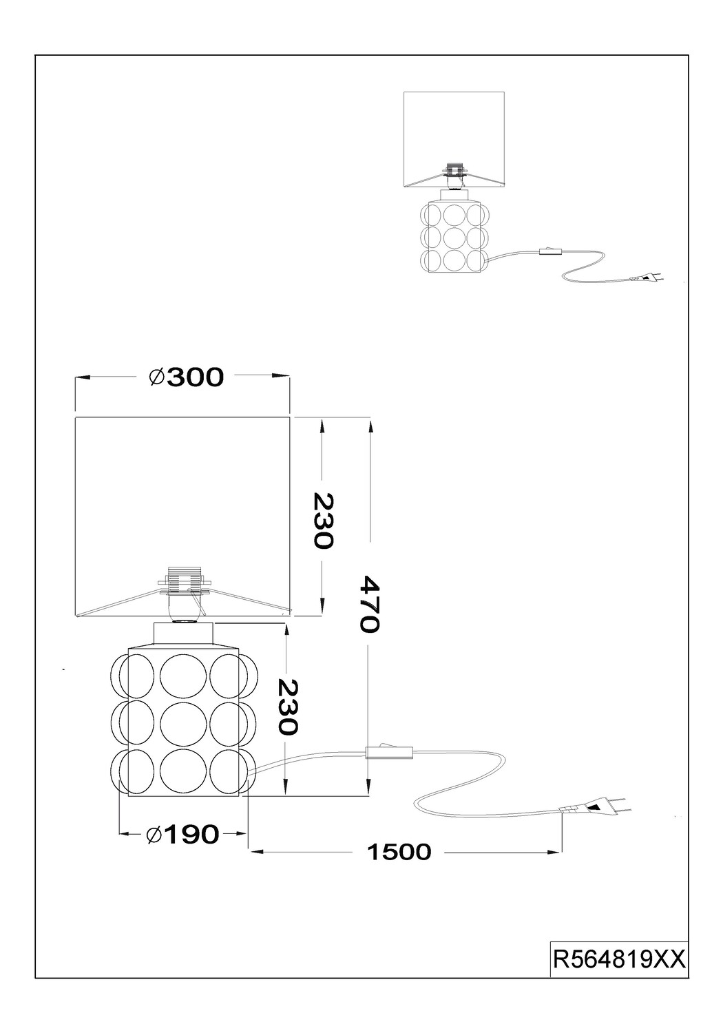 Culot E27 max 12W LED (ampoule non incluse). Interrupteur sur cordon pratique.. La collection KATE de Reality Leuchten apporte une touche décorative tendance à votre intérieur. Classe II. IP20.