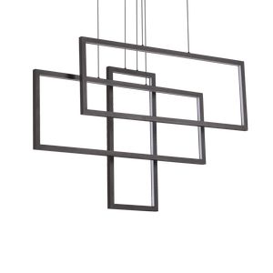 Le lustre FRAME est une association de formes géométriques. Les 3 rectangles en profilé aluminium sont recouverts d'une finition poudrée et la lumière est diffusée sur l'intérieur de l'anneau. La gamme FRAME se décline en 2 couleurs