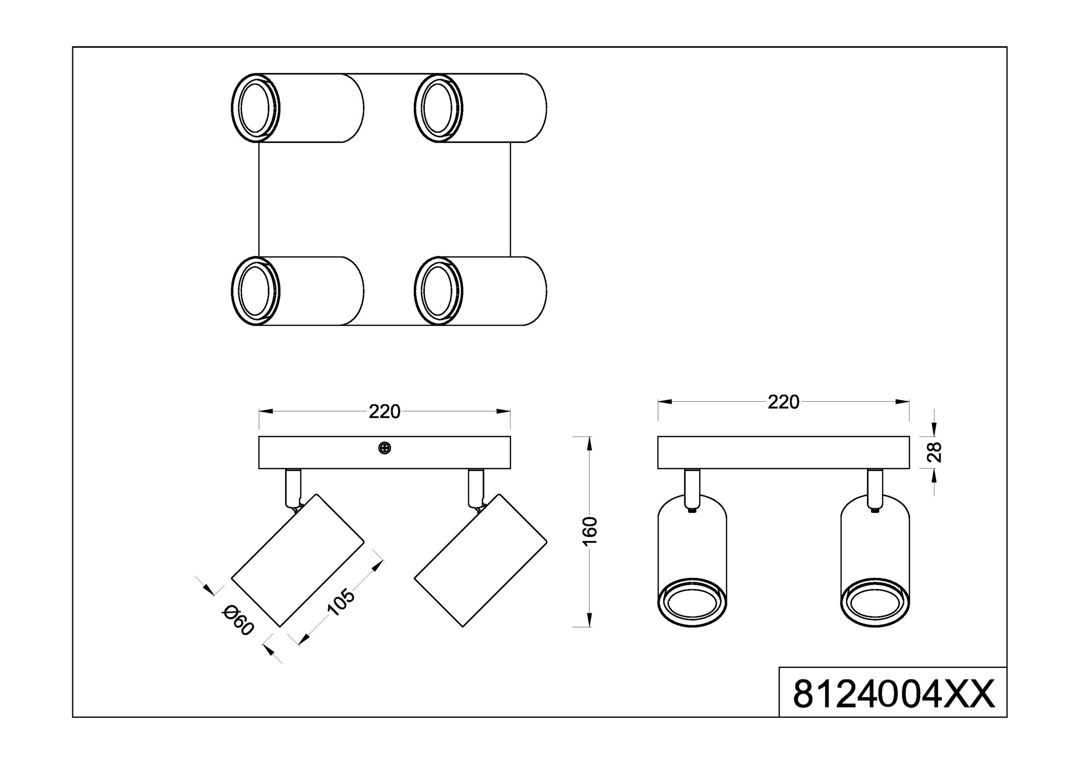 Questions FréquentesQuelle ampoule faut-il ?Quatre ampoules de type GU10 (non fournies). Est-ce que l'ampoule est remplaçable ?OUI, les ampoules GU10 sont remplaçables. Peut-on orienter la lumière ?OUI, les quatre têtes sont indépendamment orientables. Est-il dimmable ?OUI, si elle est équipée d'ampoules GU10 dimmables et d'un variateur mural compatible. Quelle est la puissance max ?Max 40W (4 x 10W). |