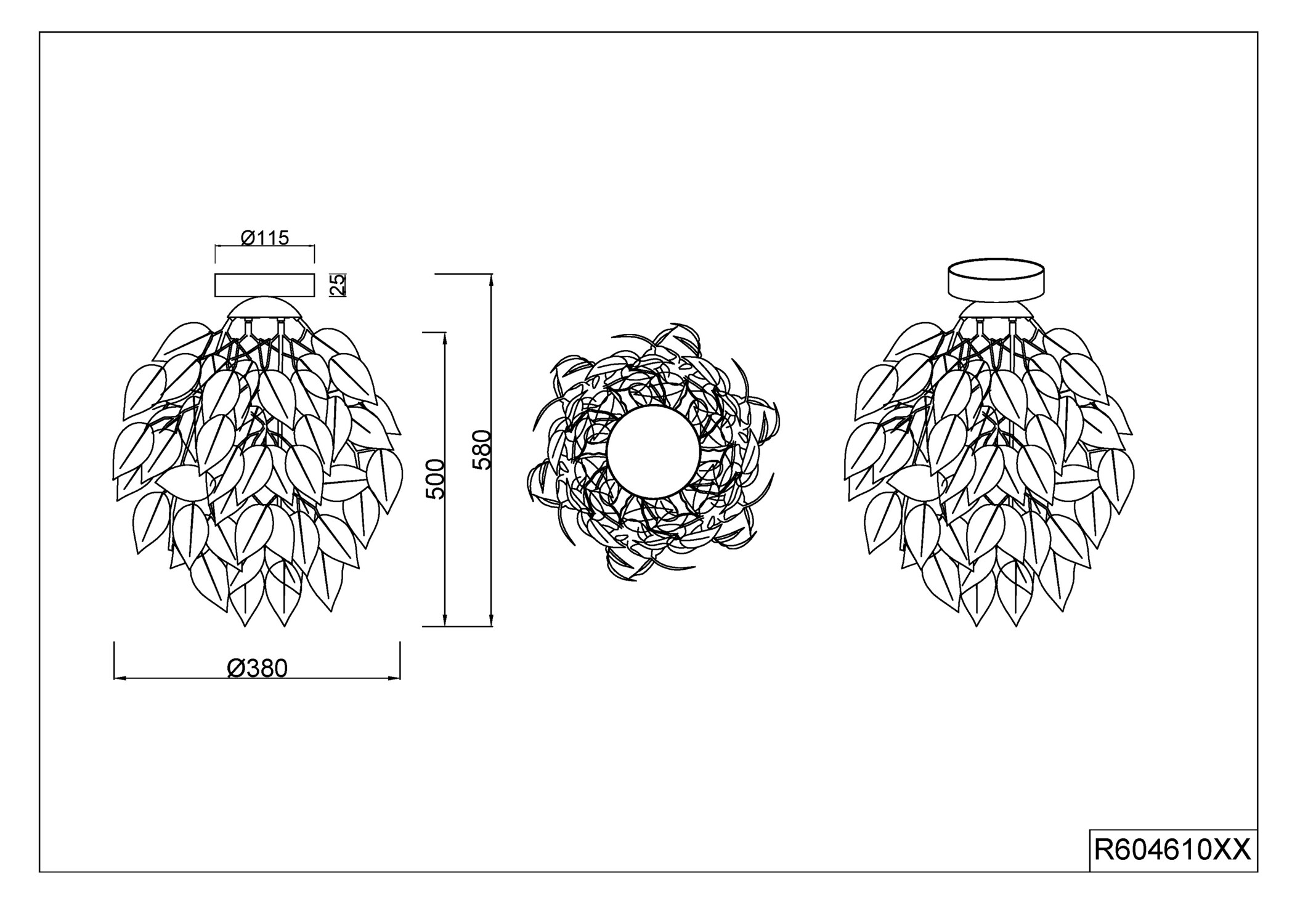 LEAVY Reality suspension plafonnier lampadaire feuilles plastique jungle urbaine. Chrome blanc vert noir. E27 E14. | Type d'ampoule | Standard E27 (non inclus(e)) | | Puissance | max.12W | | Variation | Compatible | | Alimentation / Normes | 220V / Cl1 | | Dimensions | Ø380* 580 mm | | Matière(s) Principale(s) | Métal et plastique | | Couleur/Finition | Vert & noir | | Position / Fixation | A fixer au plafond | | Utilisation | En intérieur | | Accessoire(s) | | | Garantie | 2 ans |