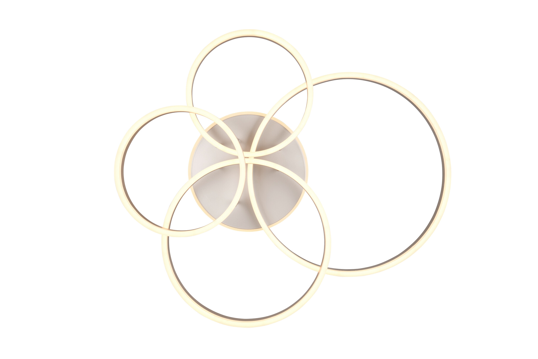 Le plafonnier raffiné aux reflets argentés Le plafonnier Drake (632210407) en nickel mat s'intègre parfaitement aux intérieurs contemporains. Son design original composé de cercles superposés crée un effet visuel élégant. Avec ses 50W LED pour 5850 lumens, il éclaire efficacement les grandes pièces.. Pilotable par télécommande, vous ajustez facilement l'intensité lumineuse et la température de couleur de 2700K (chaud) à 6500K (froid). La fonction mémoire conserve vos réglages préférés, et le mode veilleuse offre un éclairage discret la nuit.