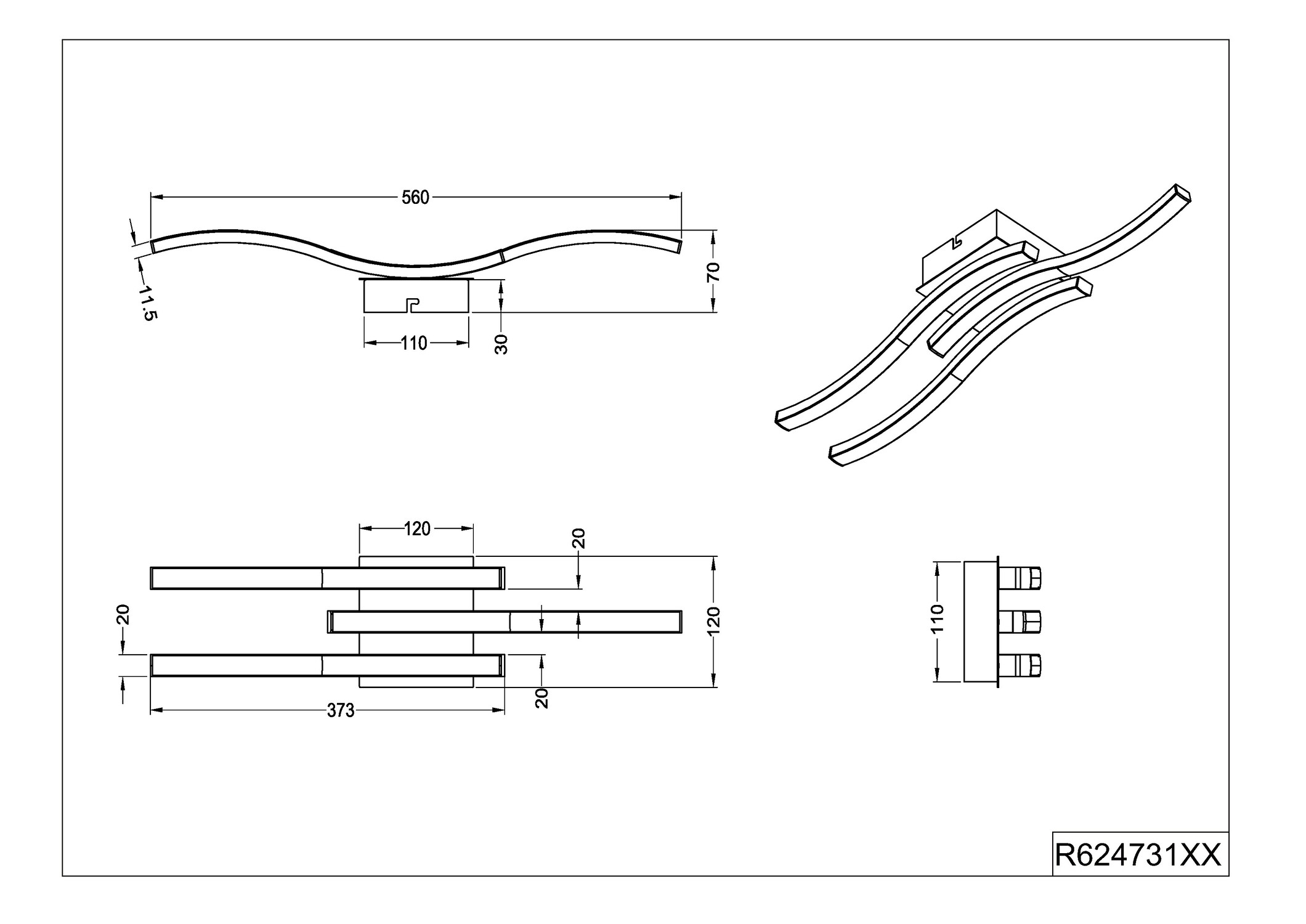 ROUTE Reality plafonnier LED lignes élégantes design courbes métal acryl. Nickel blanc noir bois. 2 3 4 lumières. 3000K 4000K. | Type d'ampoule | Led SMD (inclus(e)) | | Puissance | 3*5W 3*500Lm