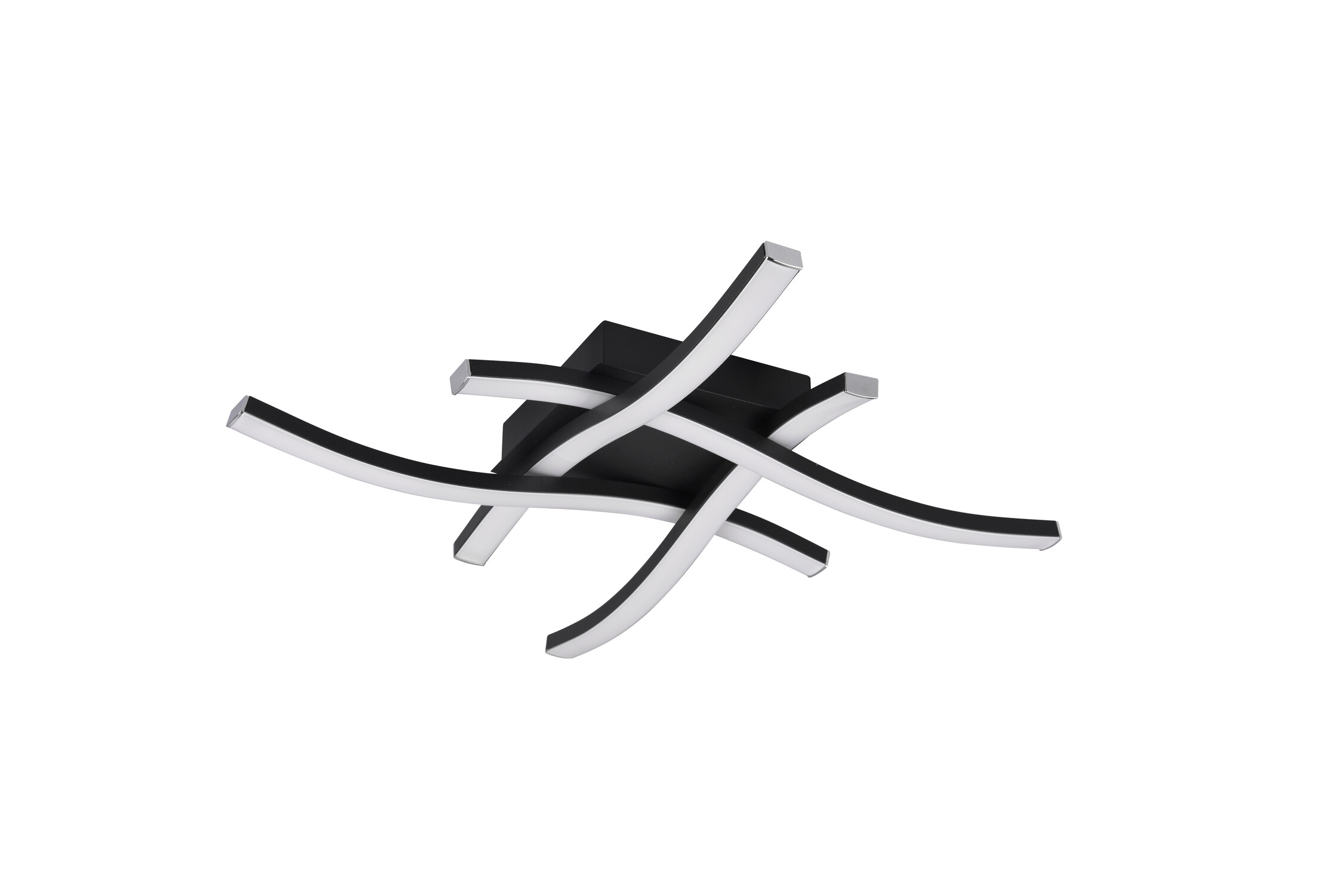 ROUTE Noir Mat - Design courbes 4 LED 3000K Le plafonnier ROUTE (R62474132) en noir mat avec 4 lignes LED crée un impact visuel maximal. Les 4 vagues noires dessinent une sculpture lumineuse contemporaine. LED intégrée 4x5W, 2000 lumens, 3000K blanc chaud. Diffuseur acryl blanc. Durée de vie 30000h. Un statement design pour les intérieurs qui assument leur style.. Plafonnier ROUTE noir 4 lumières de Reality Leuchten : impact maximal. IP20. Classe I. Livraison France et Belgique.