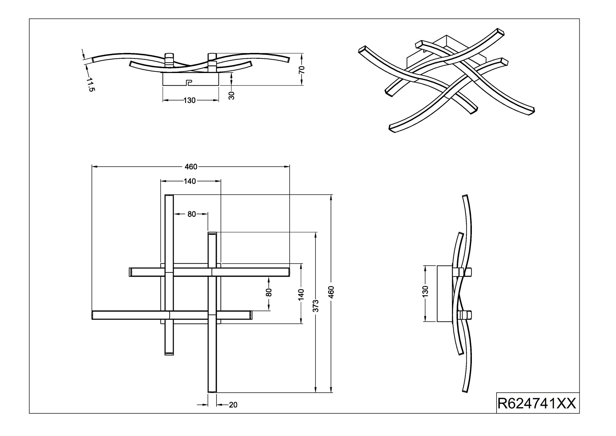 ROUTE Reality plafonnier LED lignes élégantes design courbes métal acryl. Nickel blanc noir bois. 2 3 4 lumières. 3000K 4000K. | Type d'ampoule | Led SMD (inclus(e)) | | Puissance | 4*5W 4*500Lm