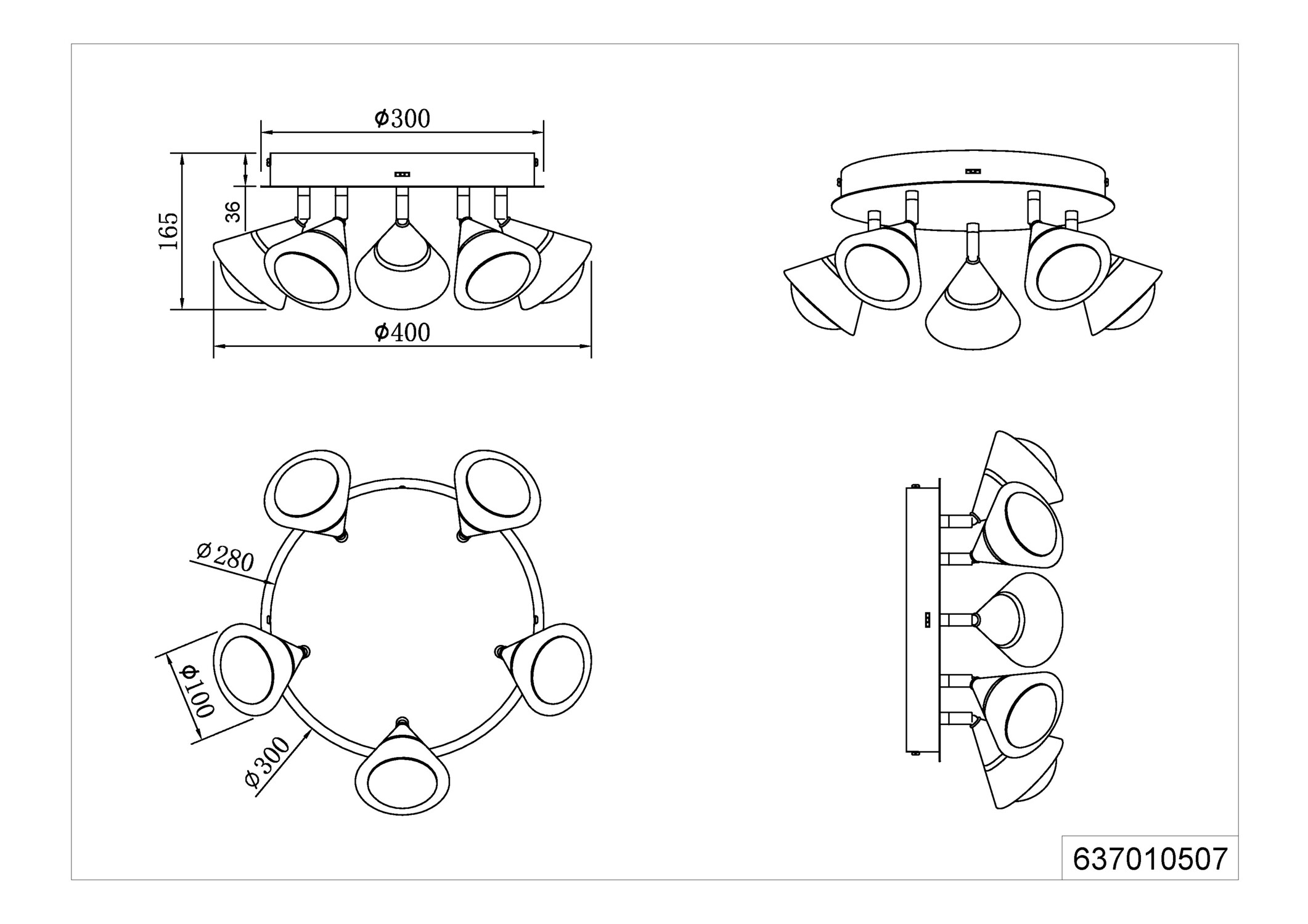 Plafonnier ROMEO Nickel Mat 5 Cônes - 637010507