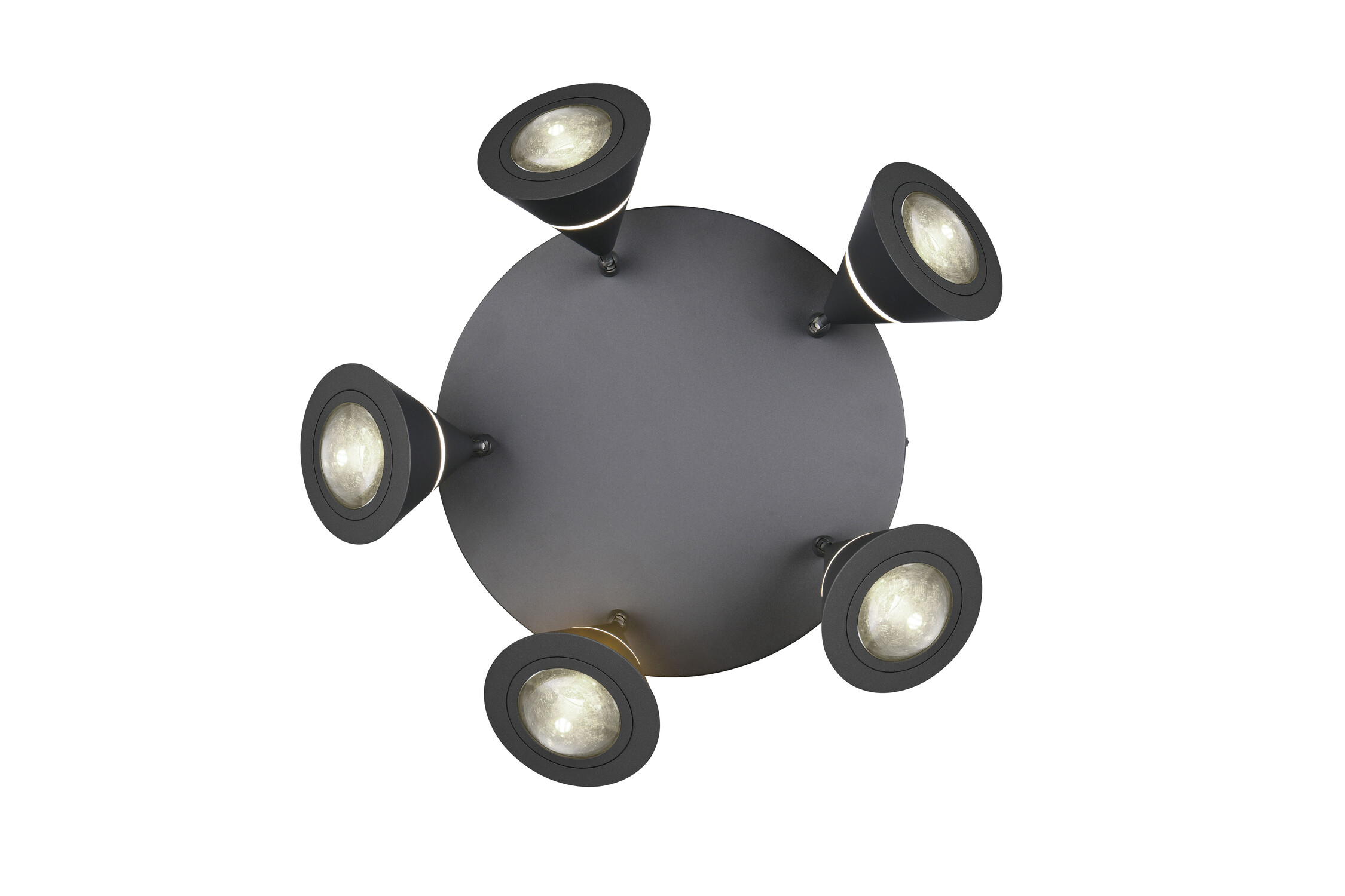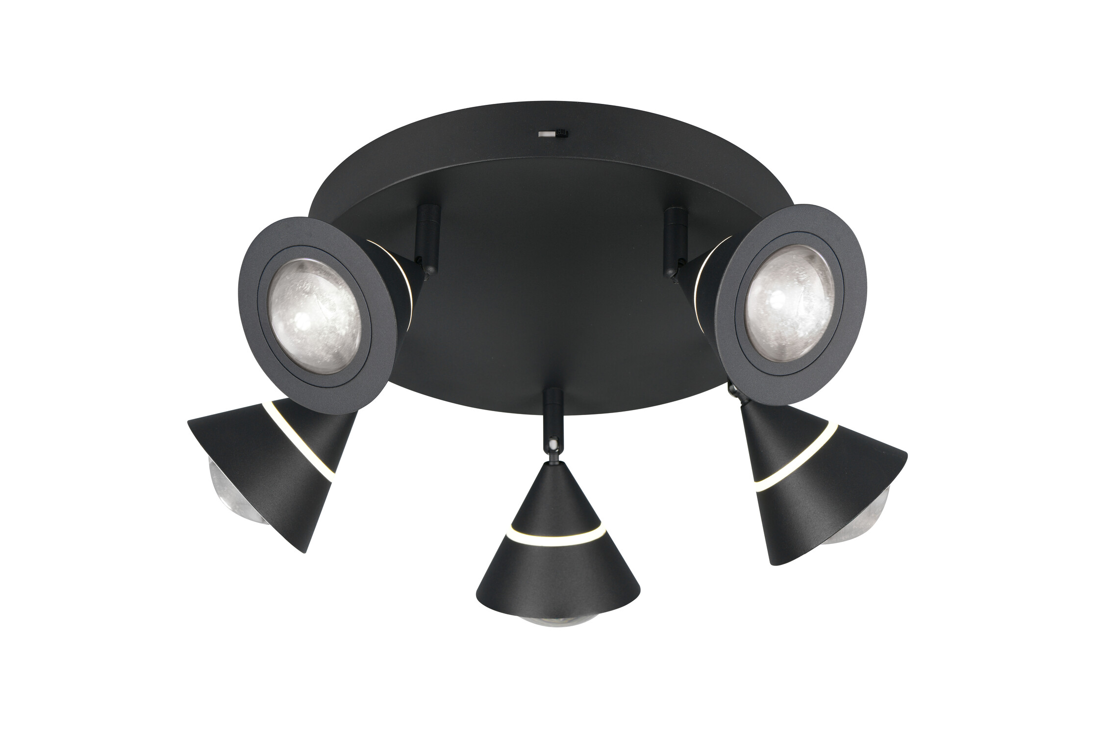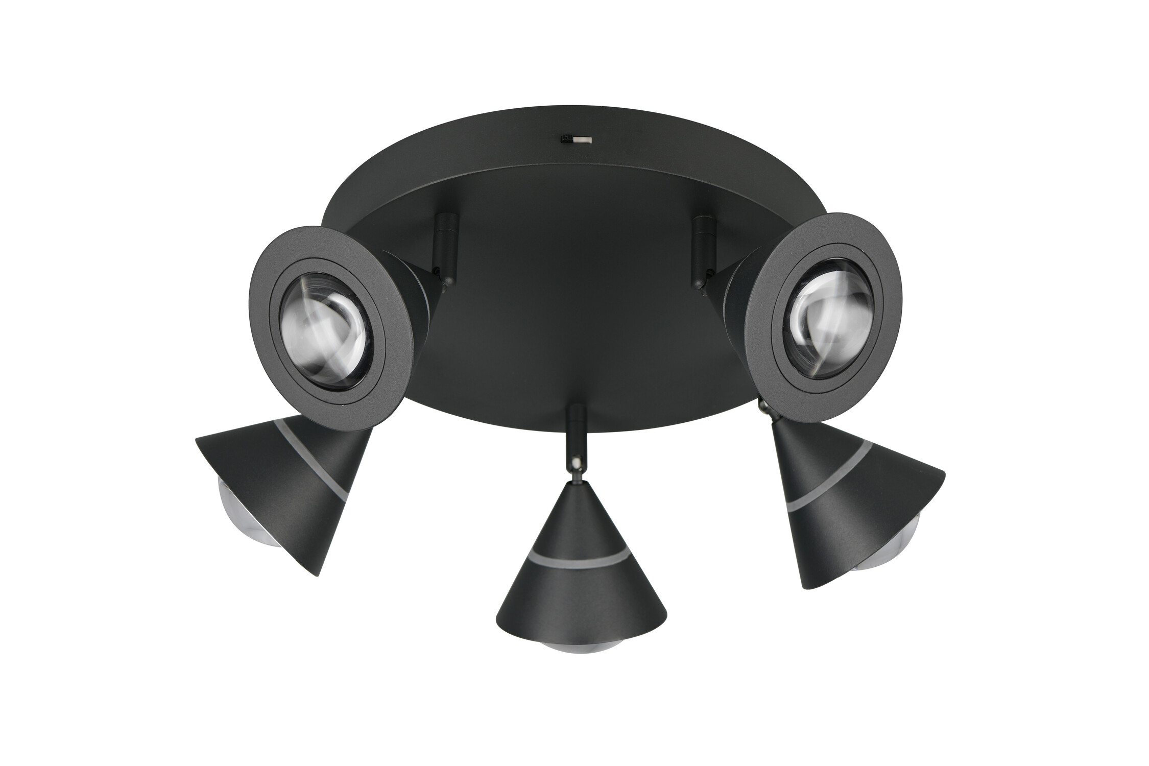 Questions FréquentesQuelle est la puissance ?5x 7W LED (3500 lumens). Hauteur du luminaire ?Fixe (env. 20 cm), idéal pour plafonds bas. Est-il dimmable ?Non, incompatible avec variateur externe. Matériau ?Métal noir mat robuste. Technologie ?LED intégrée avec choix de température de couleur (CCT). |