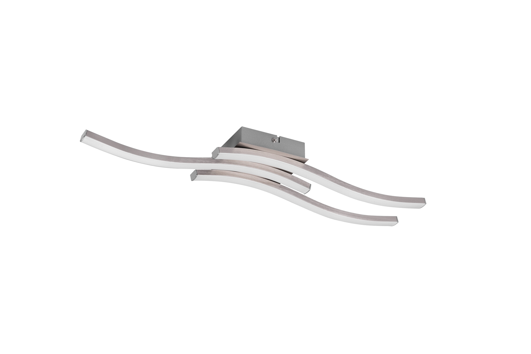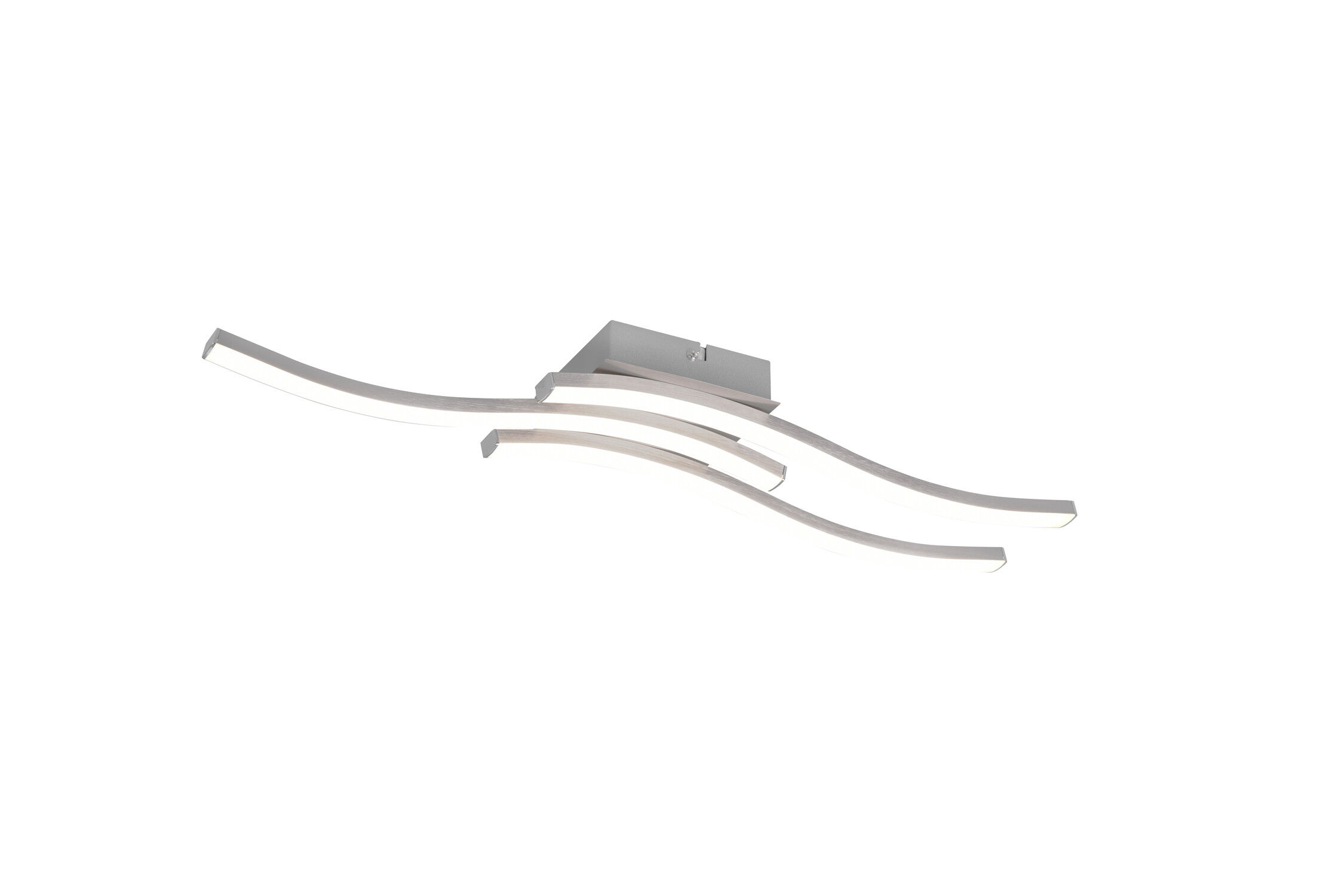ROUTE Nickel Mat - Design courbes 3 LED 4000K Le plafonnier ROUTE (R62473407) en nickel mat avec 3 lignes LED 4000K offre un éclairage fonctionnel généreux. Le blanc neutre est idéal pour les espaces de travail. LED intégrée 3x5W, 1500 lumens, 4000K blanc neutre. Diffuseur acryl blanc. Durée de vie 30000h. Parfait pour cuisine, bureau ou couloir nécessitant un bon éclairage.. Plafonnier ROUTE 3 lumières 4000K de Reality Leuchten : efficacité et design. L56 × P12 × H13cm. IP20. Classe I. Livraison France et Belgique.