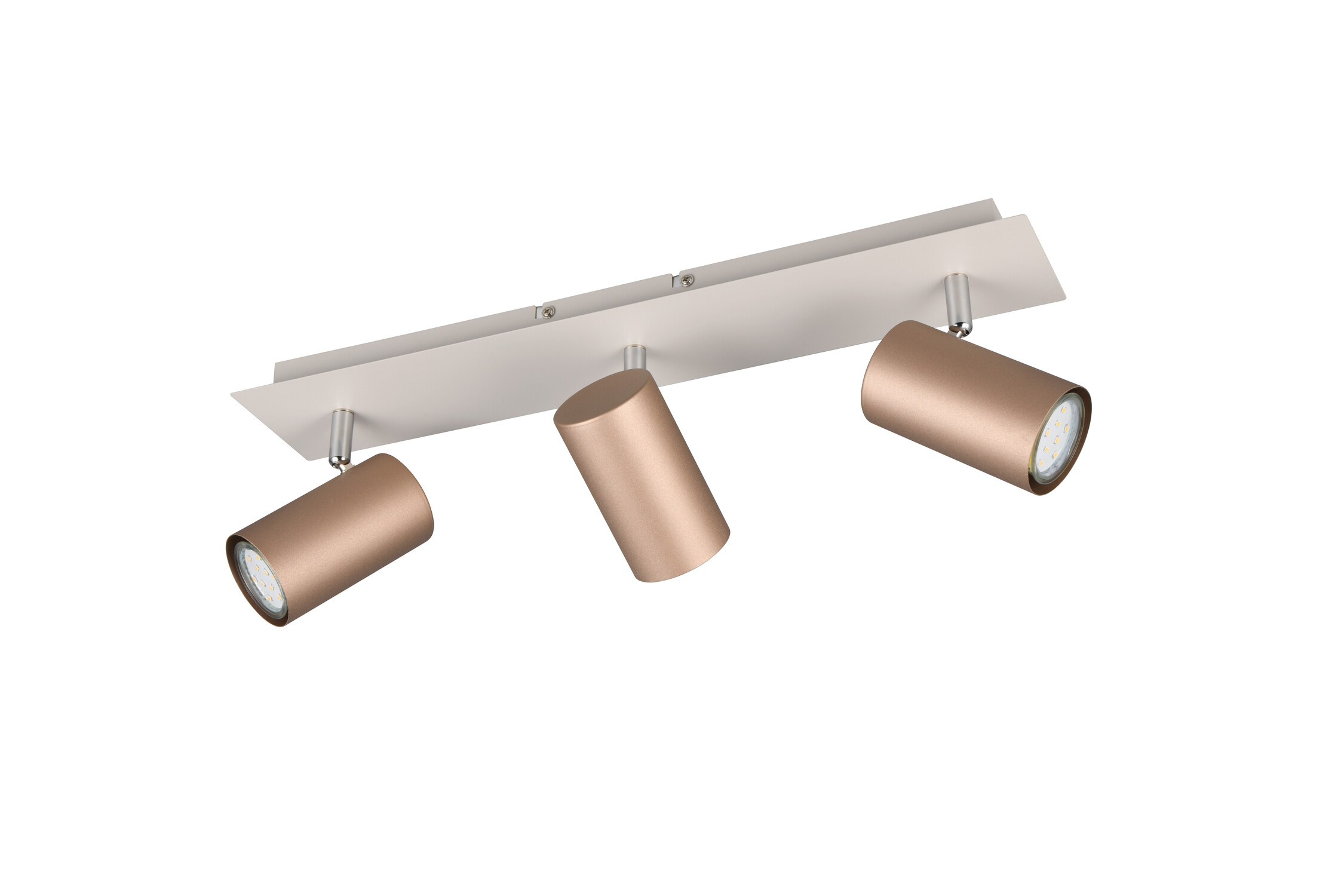 La réglette 3 spots en finition CaféLa réglette MARLEY (802400365) en finition Café Mat (Marron) apporte de la chaleur et une touche d'originalité. C'est un excellent luminaire pour éclairer une pièce de manière uniforme.. Elle nécessite trois ampoules GU10 remplaçables (non fournies, max 10W chacune). La lumière est entièrement ajustable grâce à l'orientation des têtes de spot. Spots MARLEY GU10 remplaçables, design minimaliste et orientable. | Type d'ampoule | Spot Gu10 (non inclus(e)) | | Puissance | max.3*10W | | Variation | Compatible | | Alimentation / Normes | 220V/Cl1 | | Dimensions | 480* 90* 150 mm | | Matière(s) Principale(s) | Métal | | Couleur/Finition | Café | | Position / Fixation | A fixer au plafond | | Utilisation | En intérieur | | Accessoire(s) | | | Garantie | 2 ans |