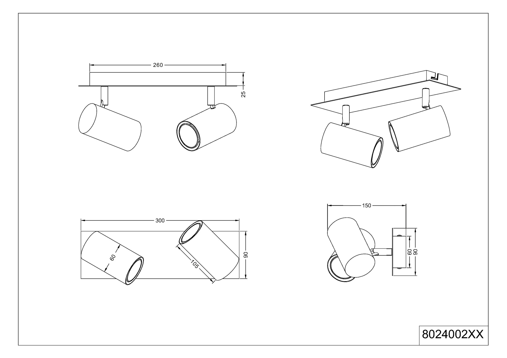 Questions FréquentesQuelle ampoule faut-il ?Deux ampoules de type GU10 (non fournies). Est-ce que l'ampoule est remplaçable ?OUI, les ampoules GU10 sont remplaçables. Peut-on orienter la lumière ?OUI, les deux têtes sont indépendamment orientables. Est-il dimmable ?OUI, si elle est équipée d'ampoules GU10 dimmables et d'un variateur mural compatible. Quelle est la puissance max ?Max 20W (2 x 10W). |