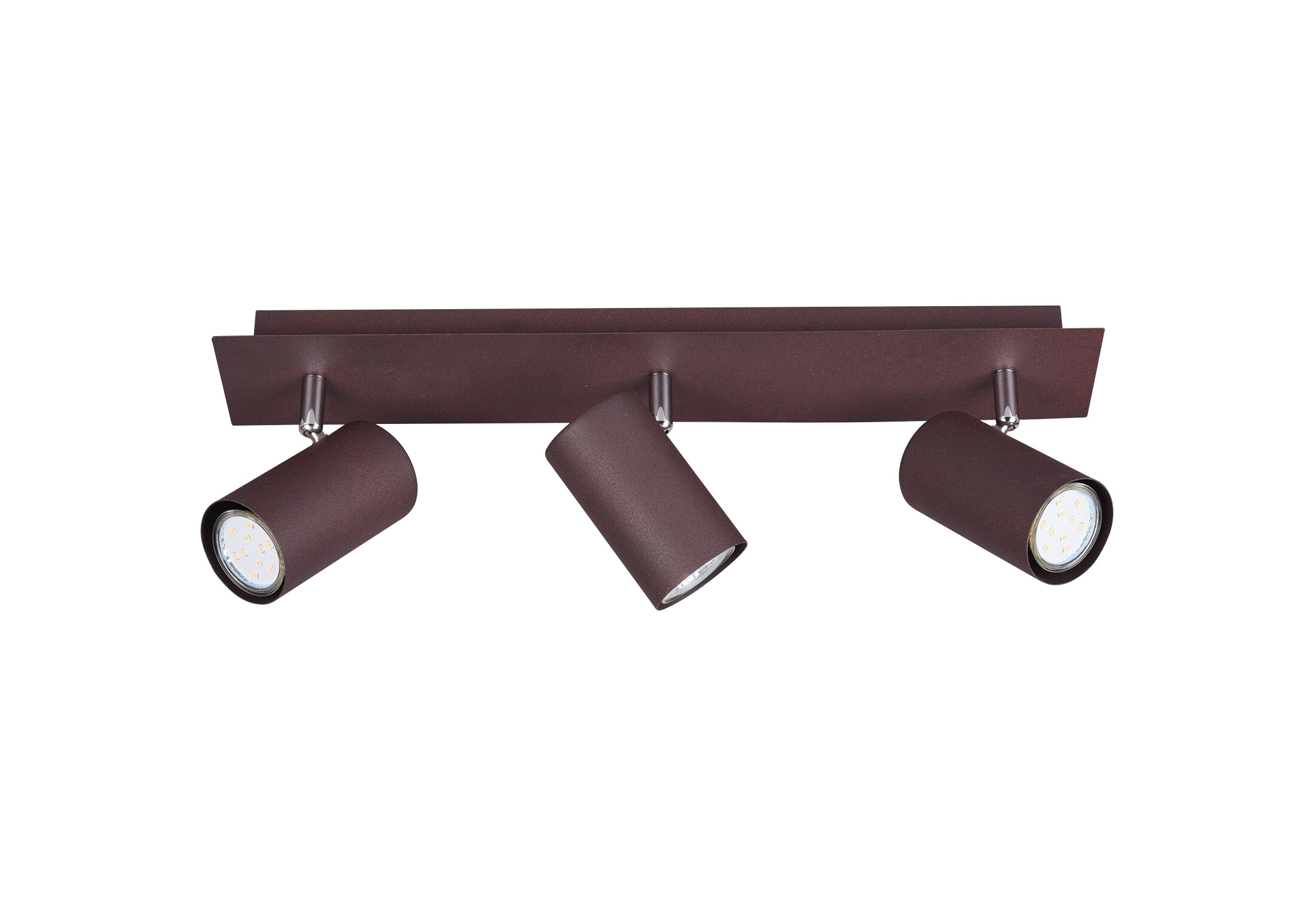 La réglette 3 spots en Marron RouilleLa réglette MARLEY (802400324) en Marron Rouille est une excellente solution pour un intérieur de style industriel. Les trois spots orientables permettent de couvrir une zone importante.. Elle nécessite trois ampoules GU10 remplaçables (non fournies, max 10W chacune). Elle peut être installée au mur ou au plafond pour un éclairage directionnel flexible. Spots MARLEY GU10 remplaçables, design minimaliste et orientable. | Type d'ampoule | Spot Gu10 (non inclus(e)) | | Puissance | max.3*10W | | Variation | Compatible | | Alimentation / Normes | 220V/Cl1 | | Dimensions | 480* 90* 150 mm | | Matière(s) Principale(s) | Métal | | Couleur/Finition | Marron rouille | | Position / Fixation | A fixer au plafond | | Utilisation | En intérieur | | Accessoire(s) | | | Garantie | 2 ans |