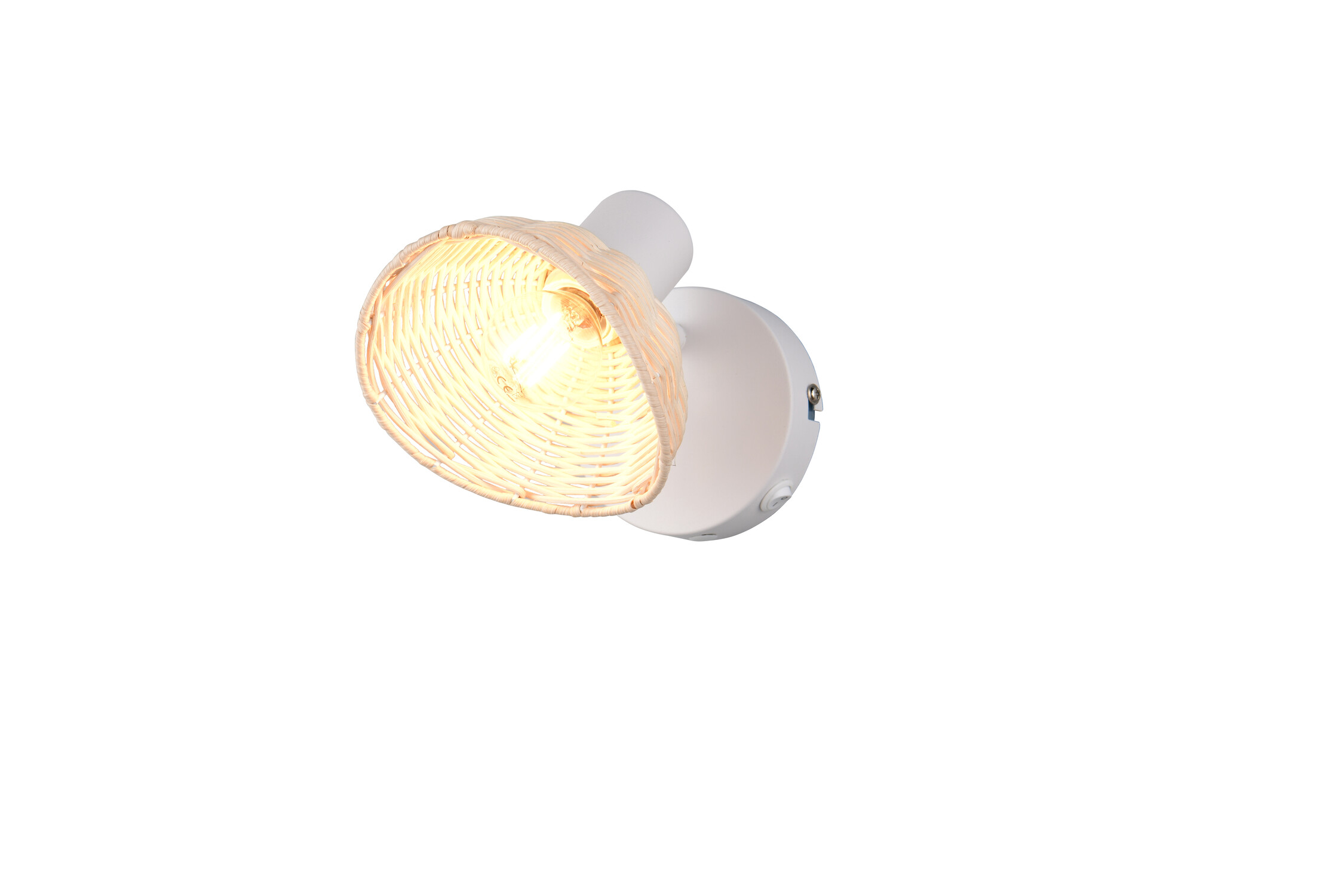 Le spot liseuse bohème-chicLe spot CALVI (R86781731) est un parfait exemple de design bohème. Il combine une base en métal blanc mat avec un abat-jour orientable en rotin tressé naturel.. Très pratique, il possède un interrupteur sur sa base et la fonction FLEXconnect (installation directe ou sur prise via un câble non fourni). Idéal en tête de lit. La série CALVI combine un métal moderne (blanc ou noir) au charme naturel du rotin tressé. | Type d'ampoule | Sphérique E14 (non inclus(e)) | | Puissance | max.10W | | Variation | Non Compatible | | Alimentation / Normes | 220V/Cl1/IP20 | | Dimensions | 130* 140* 180 mm | | Matière(s) Principale(s) | Métal et rotin | | Couleur/Finition | Blanc mat/rotin | | Position / Fixation | A fixer au mur ou plafond | | Utilisation | En intérieur | | Accessoire(s) | | | Garantie | 2 ans |