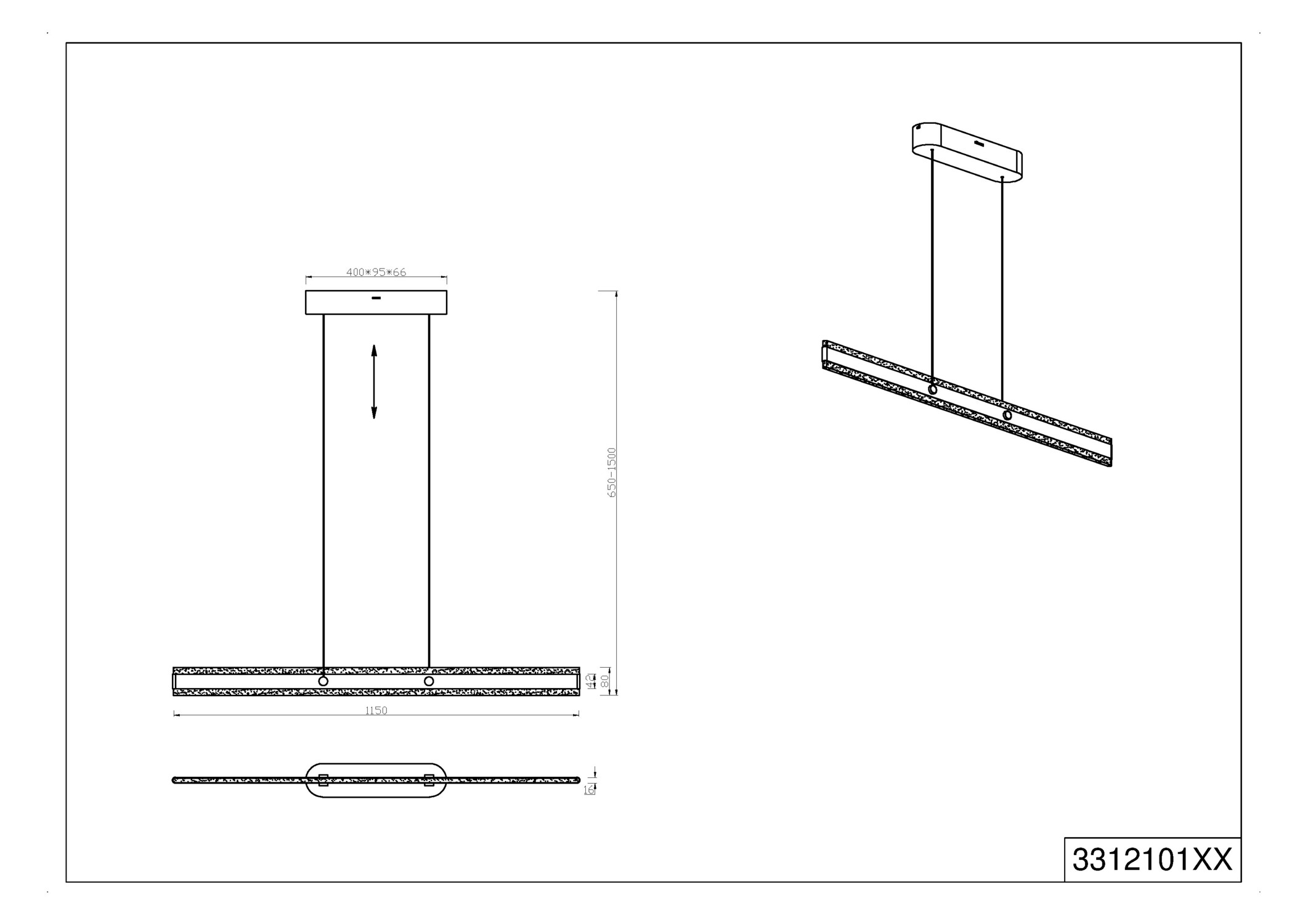 L115 × P9,5 × H65-150cm. Poids 3kg. CRI >80. 30000h. IP20. Livraison France et Belgique.
