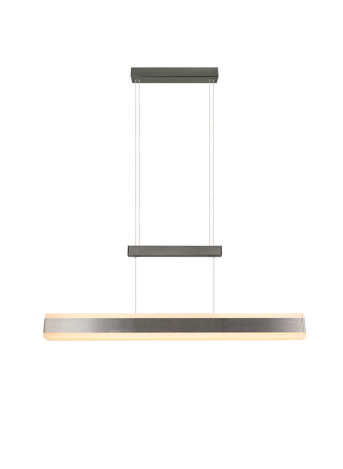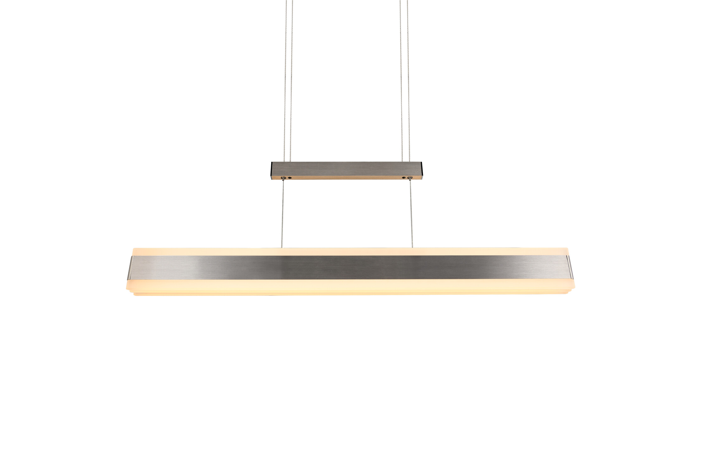 Suspension ARCOLA Étirable Nickel Mat LED 45W 97-152cm L'ARCOLA (331210307) en nickel mat se distingue par ses barres étirables de 97 à 152cm. Ajustez la largeur du luminaire pour l'adapter parfaitement à votre table ou îlot. Un atout unique pour une installation sur mesure.