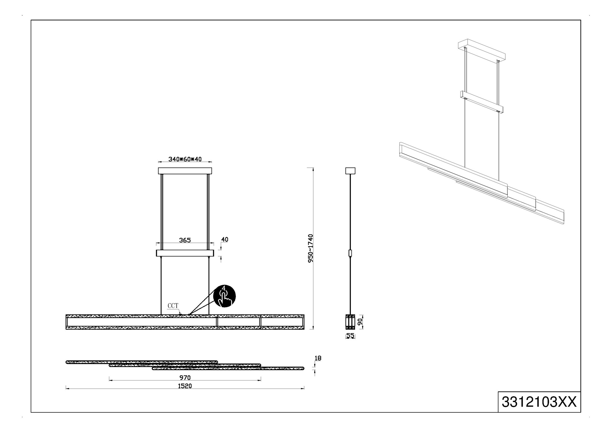 L97-152 × P6 × H95-174cm. Poids 5,2kg. CRI >80. 30000h. IP20. Livraison France et Belgique.