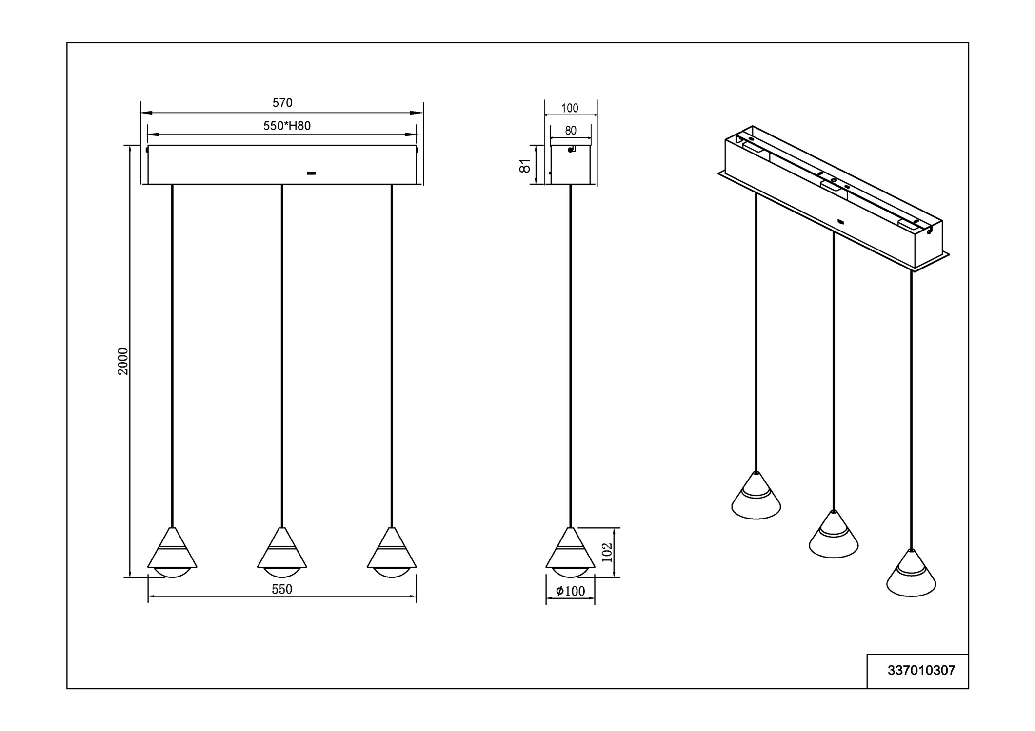 CCT 2300/3000/4000°K 2700=chaud • 3000=chaud neutre • 4000=neutre • 6000=froid | | Variation | Non Compatible | | Alimentation / Normes | 220V/Cl2 | | Dimensions | 550* 100* 2000 mm | | Matière(s) Principale(s) | Métal | | Couleur/Finition | Nickel mat | | Position / Fixation | A fixer au plafond | | Utilisation | En intérieur | | Accessoire(s) | | | Garantie | 2+3 ans