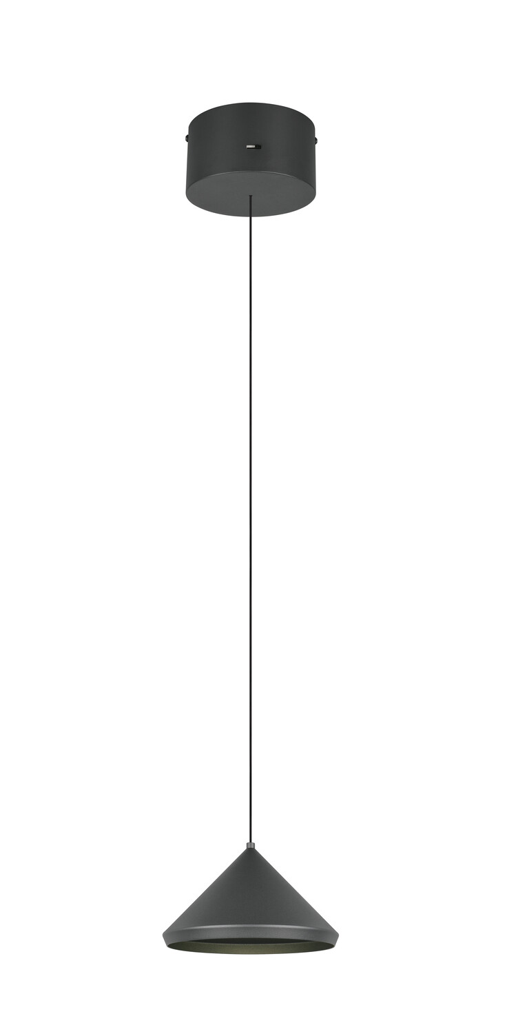 Suspension LAGUNA 1 Cône Noir Mat LED 5W - 3 Températures La suspension LAGUNA (336210132) présente un élégant cône noir mat au design épuré. LED 5W / 500lm intégrée avec sélecteur de température sur la base : 2300K (blanc très chaud), 3000K (blanc chaud) ou 4000K (blanc neutre).