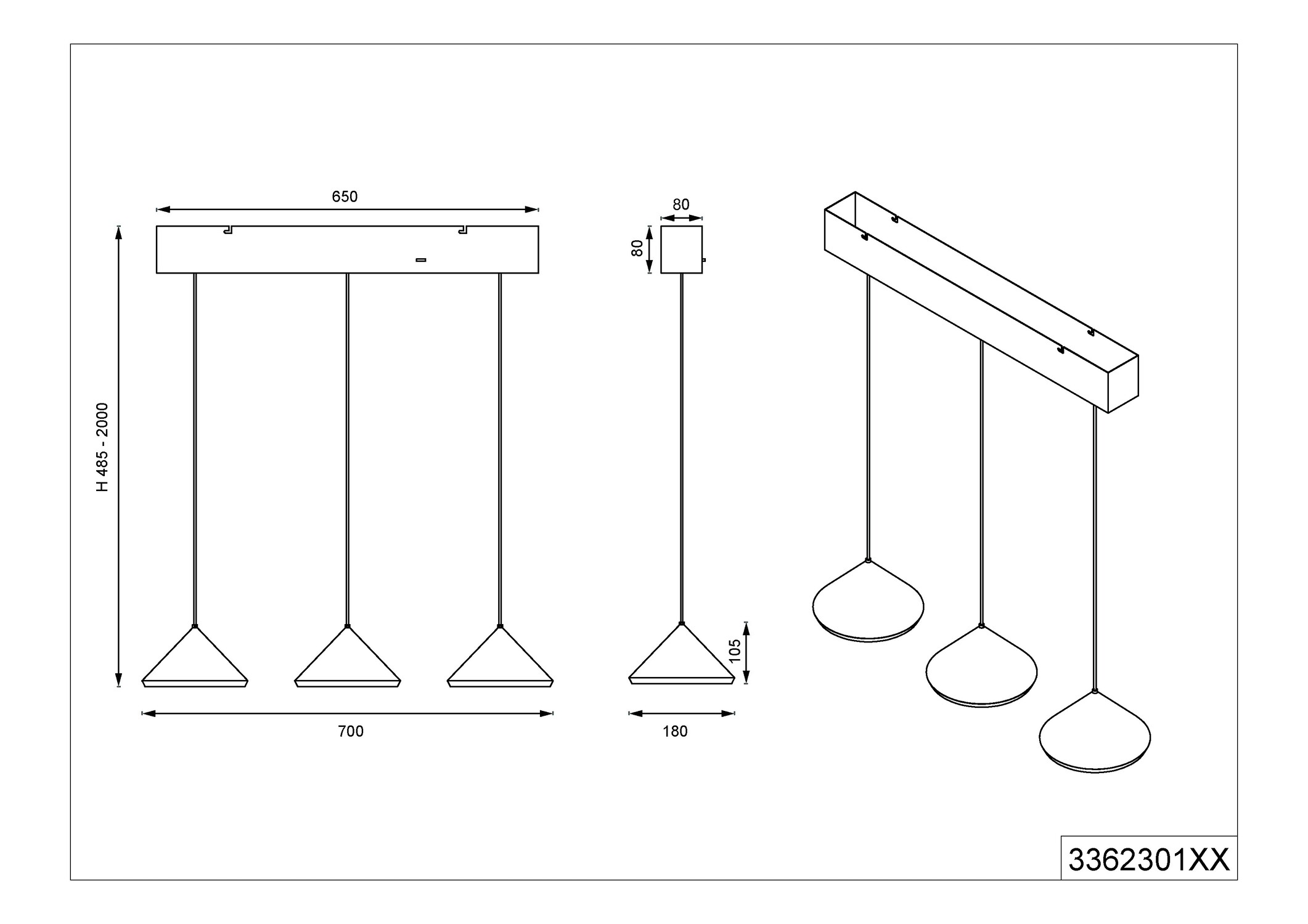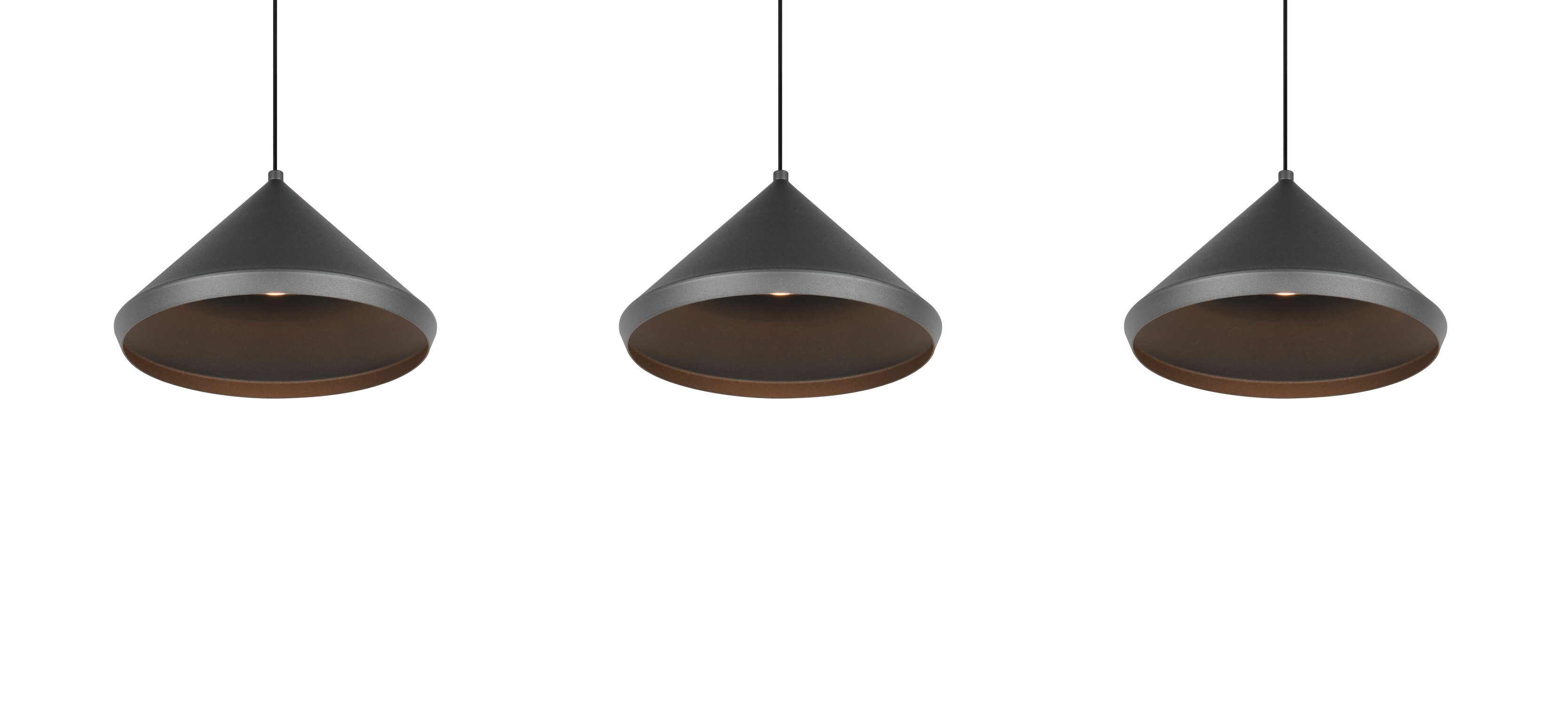 Système Lift-Me : réglage de hauteur individuel pour chaque cône.. La collection LAGUNA de Trio Lighting allie design contemporain et technologie LED avancée. CRI >80. Durée de vie 15000h. Classe II. IP20 intérieur.