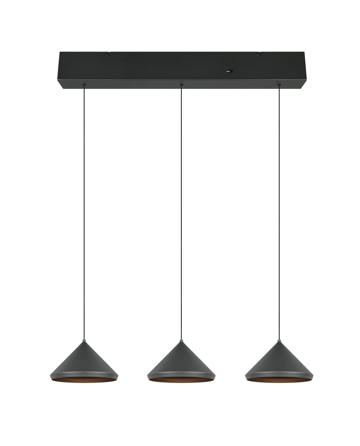 Suspension LAGUNA 3 Cônes Noir Mat LED 15W - 3 Températures La suspension LAGUNA (336210332) présente 3 cônes noirs mats alignés sur une barre élégante. LED 3×5W / 1500lm intégrée avec sélecteur de température : 2300K, 3000K ou 4000K selon votre ambiance.