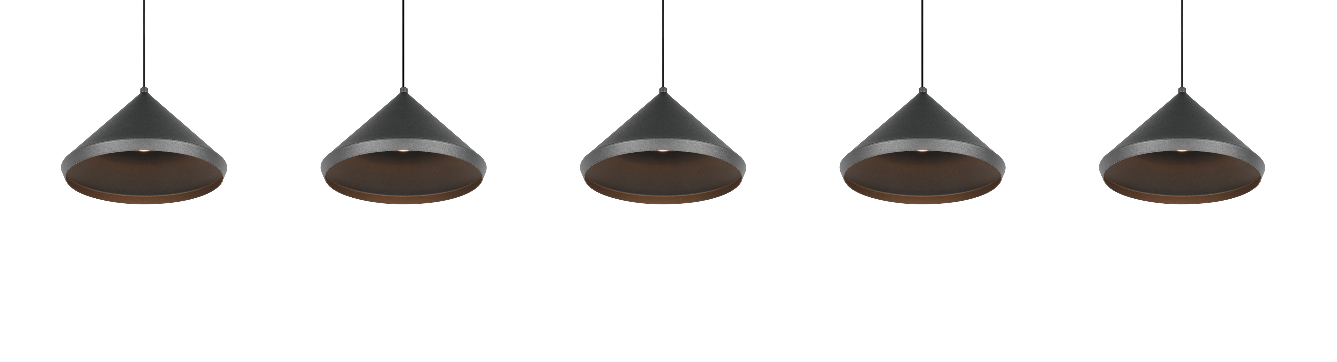 Système Lift-Me : réglage de hauteur individuel pour chaque cône.. La collection LAGUNA de Trio Lighting allie design contemporain et technologie LED avancée. CRI >80. Durée de vie 15000h. Classe II. IP20 intérieur.