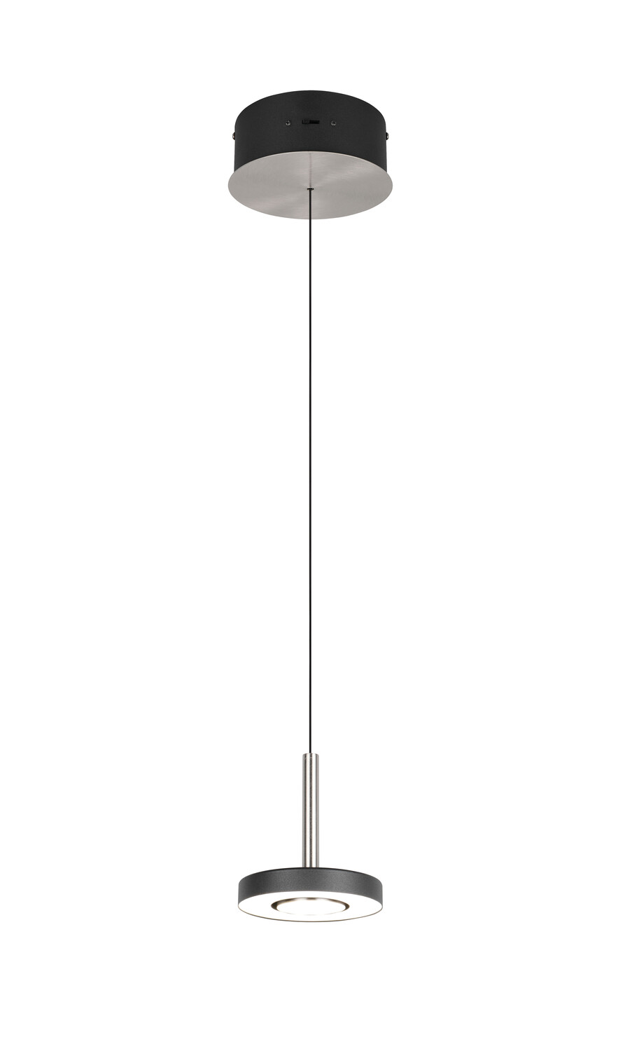 GUANO : Suspension Lift Me LED CCT - Nickel MatCette suspension GUANO 1 lumière en Nickel Mat est idéale au-dessus d'une table. Elle est équipée de la LED SMD intégrée et du système CCT (3 teintes de lumière fixes). Le grand avantage est le système Lift Me qui permet un ajustement facile de la hauteur sans outils.. La teinte de la lumière (2300K, 3000K, 4000K) se règle par un commutateur sur sa base, l'intensité lumineuse se fait via l'interrupteur mural standard (Switch Dimmer (*)) et la fonction mémoire conserve votre dernier réglage. | Type d'ampoule | Led SMD (inclus(e)) | | Puissance | 8W 850Lm
