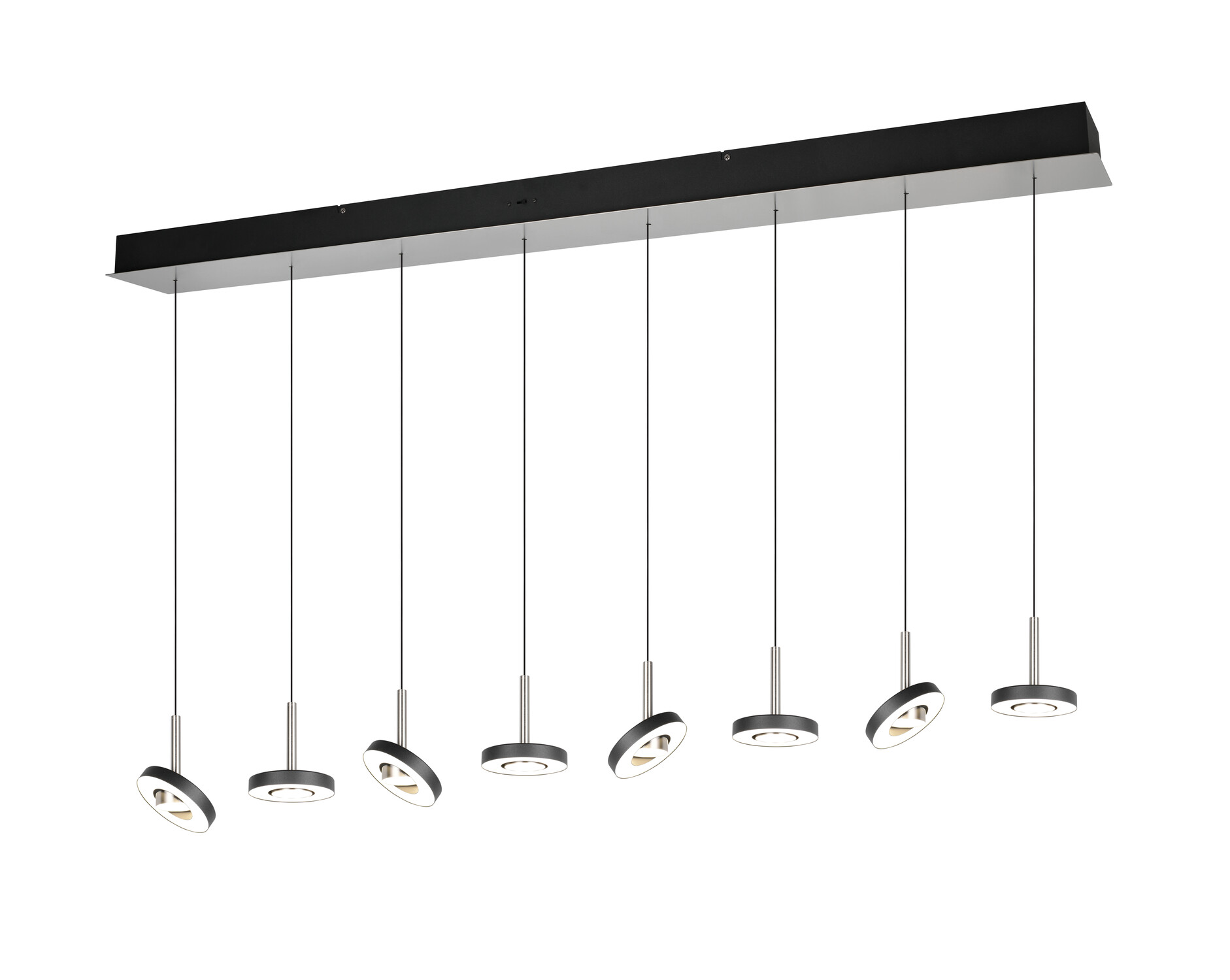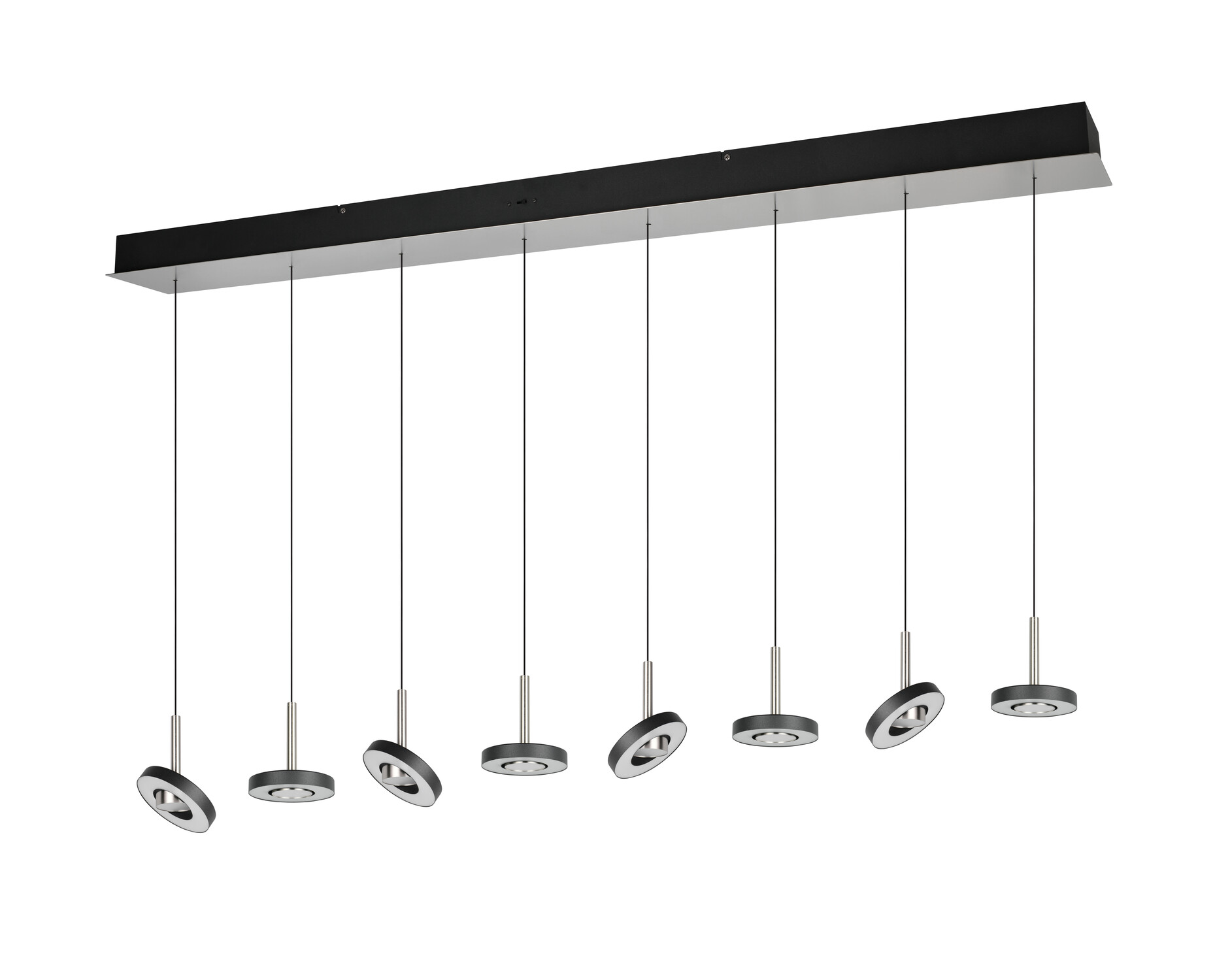 GUANO : Suspension Barre Lift Me LED CCT XL - Nickel MatCe modèle GUANO à 8 lumières en Nickel Mat est conçu pour les très grandes tables. Le système Lift Me est indispensable pour ajuster facilement la hauteur d'un luminaire de cette taille.. Le système CCT permet de basculer facilement entre trois teintes de blanc fixes, et la variation se contrôle via l'interrupteur mural. La fonction mémoire rend son utilisation quotidienne très confortable. GUANO : La collection LED technologique avec fonction CCT, Mémoire et Lift Me. Finitions Nickel Mat et Gris Mat/Café. | Type d'ampoule | Led SMD (inclus(e)) | | Puissance | 8*8W 8*850Lm