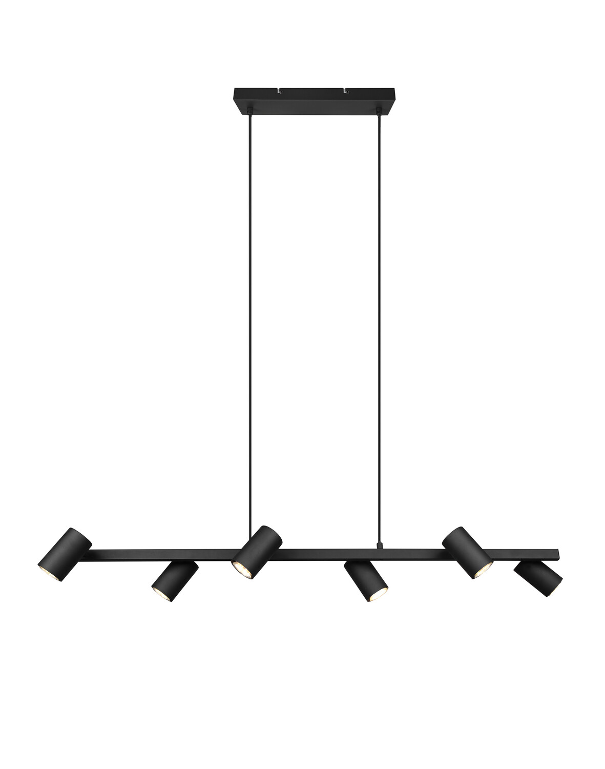 La suspension 6 lumières personnalisable en Noir Mat (XXL)La suspension MARLEY (302400632) est le modèle XXL de la série, en Noir Mat. Ce luminaire au design discret séduit par sa qualité de fabrication et sa polyvalence.. Elle nécessite six ampoules GU10 remplaçables (non fournies, max 10W chacune). La suspension est particulièrement efficace au-dessus d'une très grande table. L'éclairage LED est fortement recommandé. Suspensions MARLEY GU10 remplaçables, design minimaliste et orientable. | Type d'ampoule | Spot Gu10 (non inclus(e)) | | Puissance | max.6*10W | | Variation | Compatible | | Alimentation / Normes | 220V/Cl1 | | Dimensions | 1150* 180* max.1500 mm | | Matière(s) Principale(s) | Métal | | Couleur/Finition | Noir mat | | Position / Fixation | A fixer au plafond | | Utilisation | En intérieur | | Accessoire(s) | | | Garantie | 2 ans |