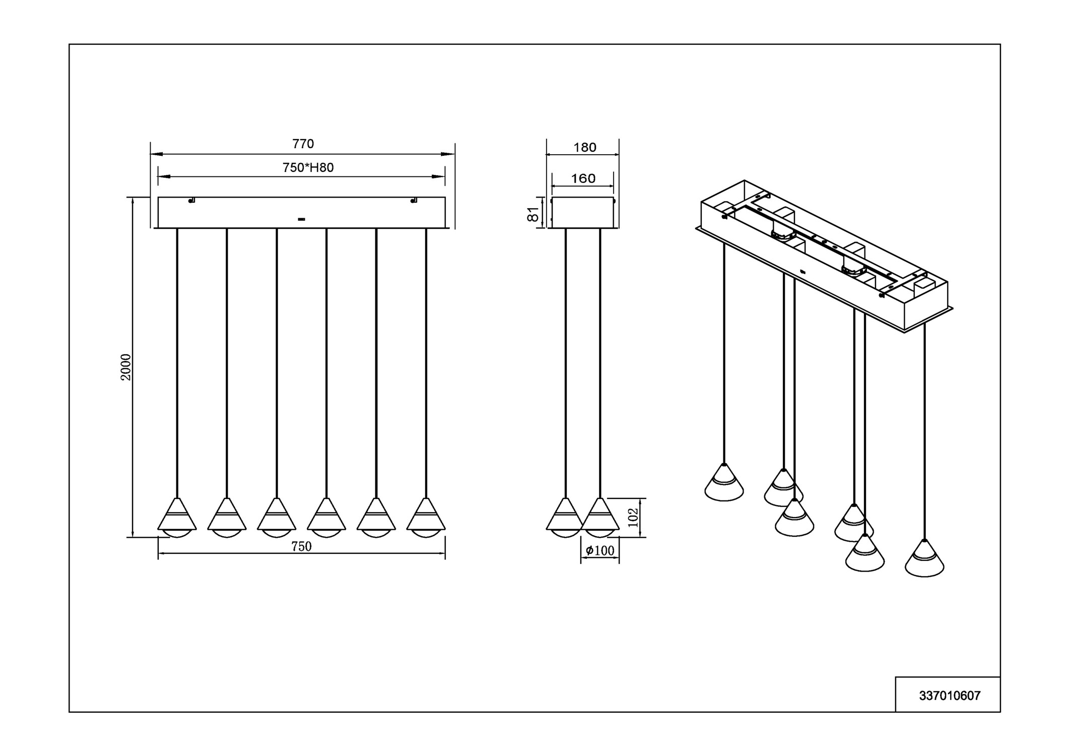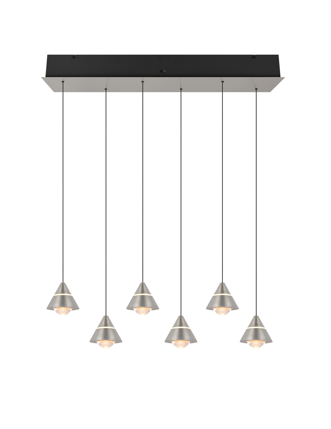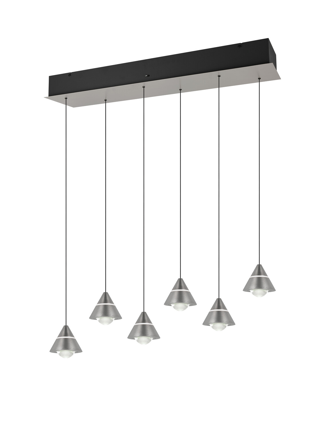 La suspension ROMEO (337010607) est spectaculaire. Sur sa base rectangulaire, 6 spots coniques peuvent être montés ou descendus chacun indépendamment des autres grâce au système Lift Me.. Créez une vague, une ligne droite ou un chaos organisé au-dessus de votre table. Puissante (4200lm) et équipée du CCT (choix de couleur), c'est le luminaire ultime pour les grandes salles à manger.