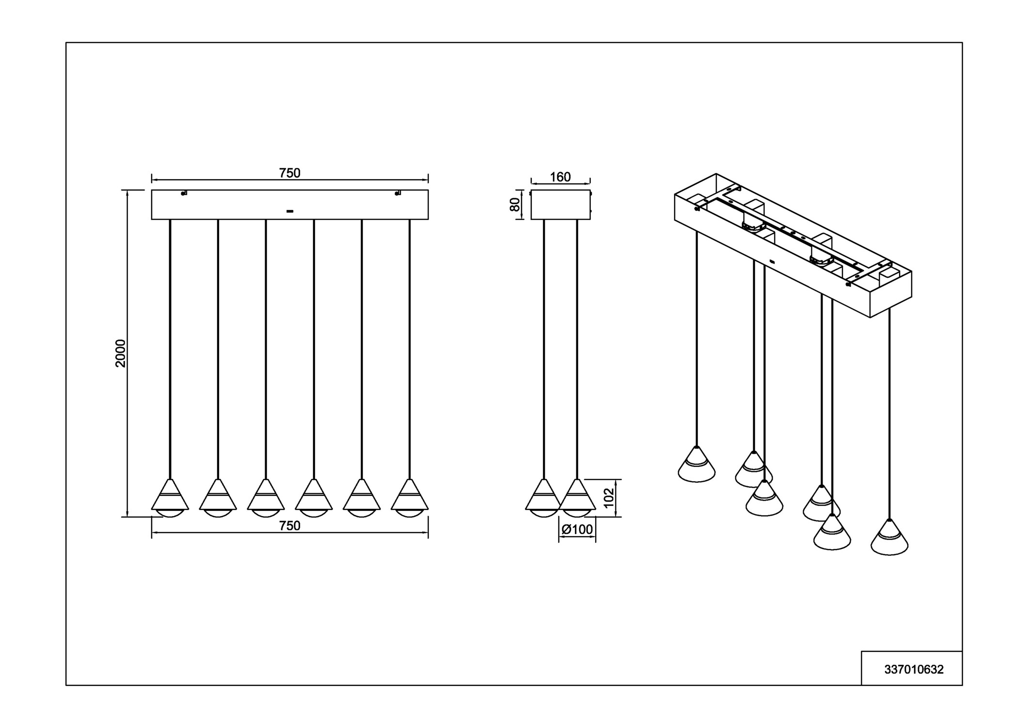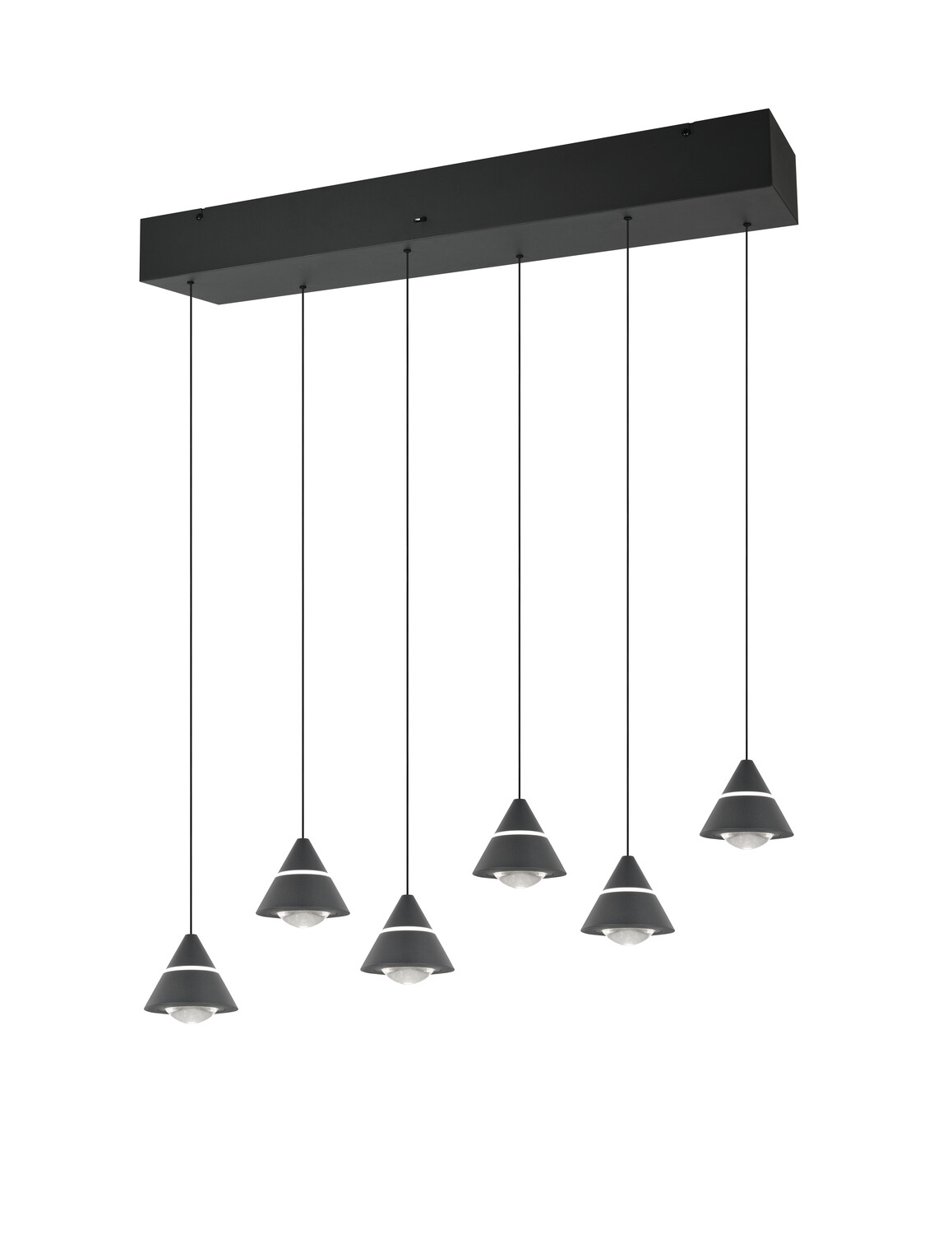 Le lustre noir 100% ajustableLa suspension ROMEO (337010632) change d'aspect selon vos envies. Avec le système Lift Me, ajustez la hauteur de chacun des 6 cônes noirs indépendamment pour sculpter votre éclairage.. Puissante (4200 lumens) et élégante, elle offre aussi le choix de la température de lumière (CCT). Une pièce maîtresse pour les intérieurs contemporains. La gamme ROMEO intègre le système de réglage en hauteur "Lift Me" et la technologie CCT pour un confort absolu et se décline en 2 couleurs : | Type d'ampoule | Led SMD | | Puissance | 6*7W 6*700Lm