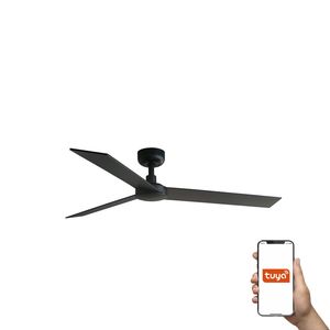 Ventilateur de plafond RUDDER L noir/bois connecté Tuya+télécommande
